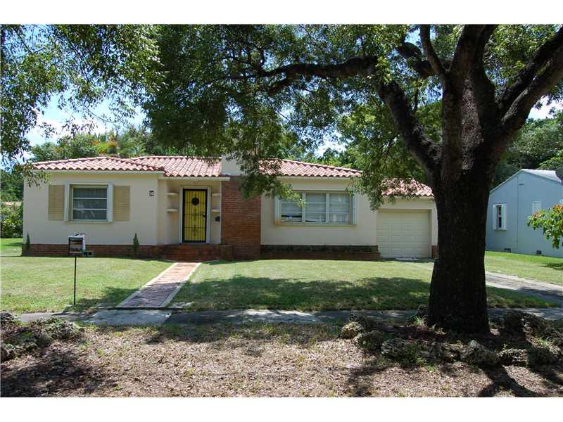 Enjoy this Miami Shores 2/2 plus garage and all it's charm. Living rm has fireplace & hardwood floors throughout & is warm and inviting. Family rm is surrounded by windows and lends itself out french door to the backyard. Lots of natural light permeates through the lovely new impact windows. Kitch has been designed w/new cabs, granite counter & backsplash & stainless steel appliances. Nicely updated baths. Freshly painted. Buy this home w/confidence and at an affordable price. Move in condition, hurry