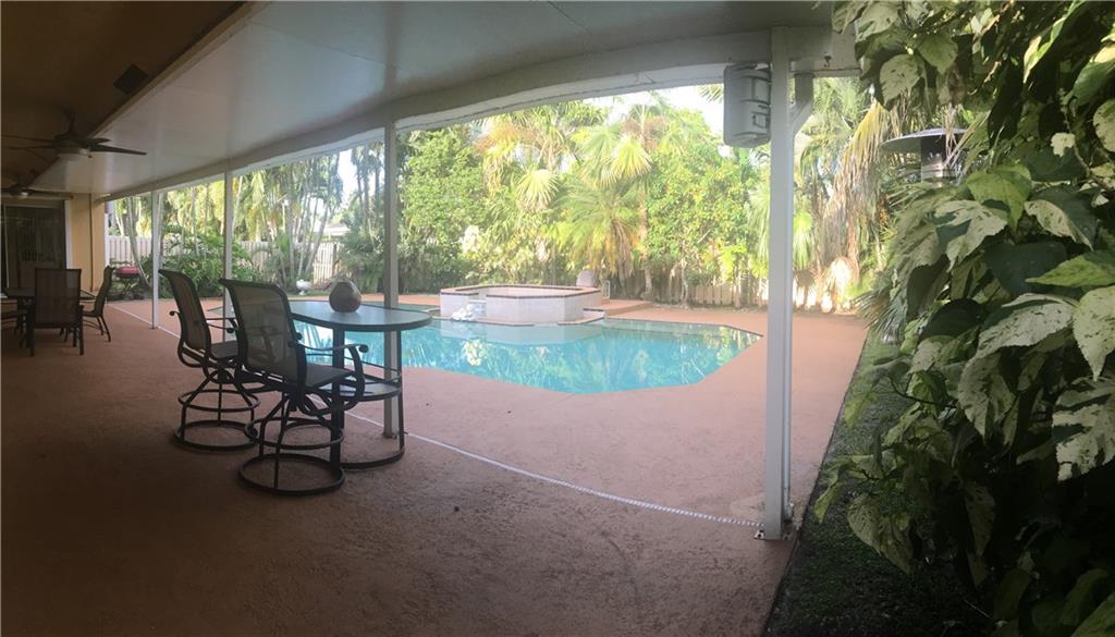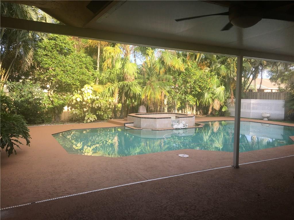 Charming 3BR/2BA in a highly desired school district and a family friendly neighborhood. Home boasts an oversized heated and self chlorinating pool with tropical landscaping and a large covered patio. Open floorplan with lots of windows and natural light and ceiling fans throughout. Master bedroom overlooks pool with cabana bath access. Fenced in yard makes it pet friendly. Hurricane ready with easy to close accordian shutters. Furniture is negotiable. Easy to show!! Come see your future home.