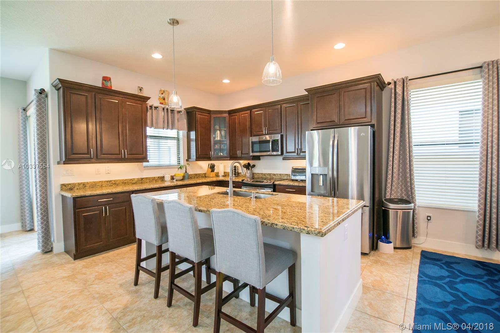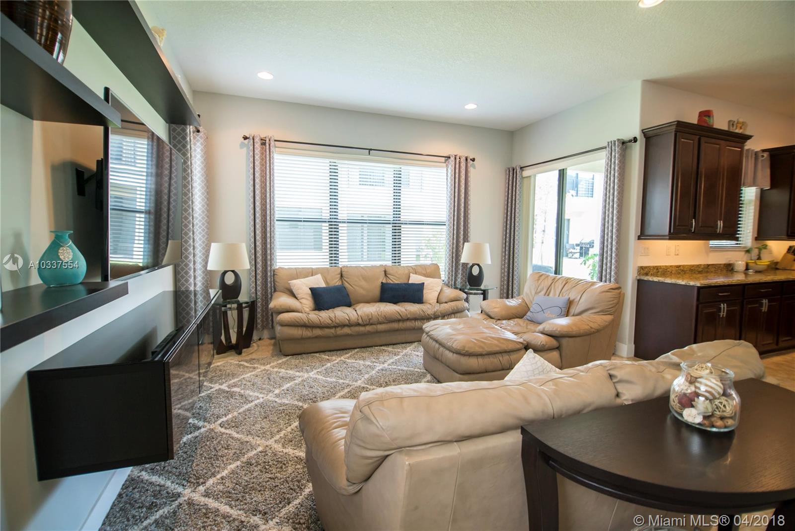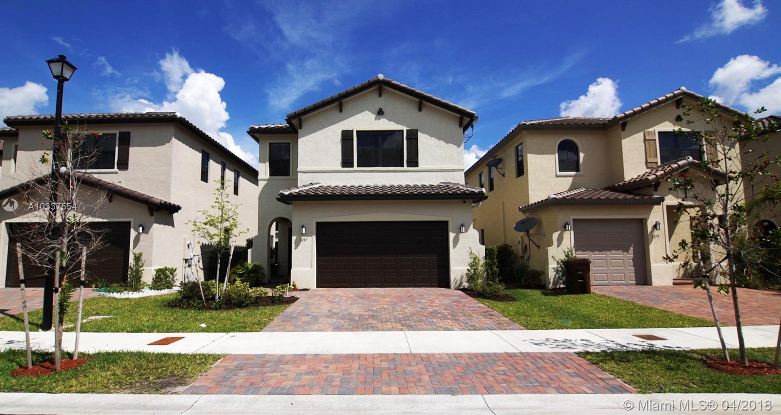 2016 construction-$12K upgrades, low maintenance exterior, yard can be fenced or plants for privacy (verify HOA), large master bedroom + loft, laundry upstairs, near future American Dream Miami Mega mall w/UPSCALE art/entertainment, dining & more, near Miami Lakes & transportation. Security gate entry, LOW HOA. Resort style clubhouse (games, exercise, parties, pool). EASY TO RENT!! Casa construida 2016, granito en cocina/baños, se puede instalar cerca, recamaras amplios, lavadora y secadora segundo piso, seguridad en la entrada, cercano del futuro American Dream Miami Mega mall, entretenimiento y restaurantes exclusivos, cercano de la I-75, 826, gratigny. **Se alquila fácilmente**seguridad en la entrada