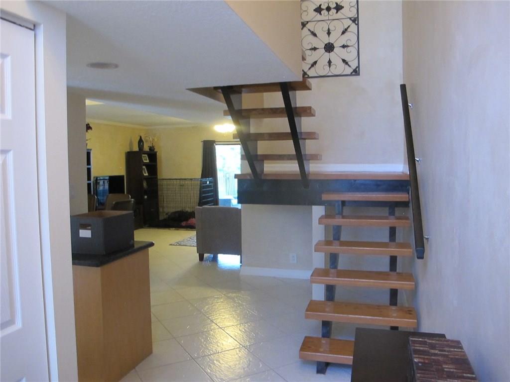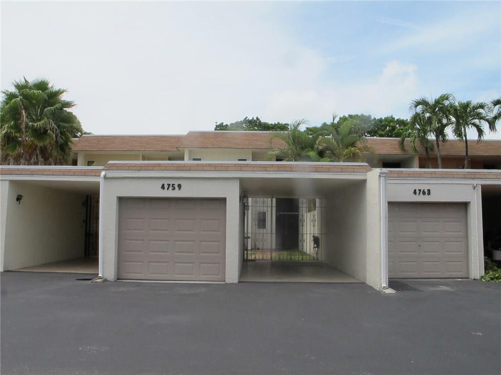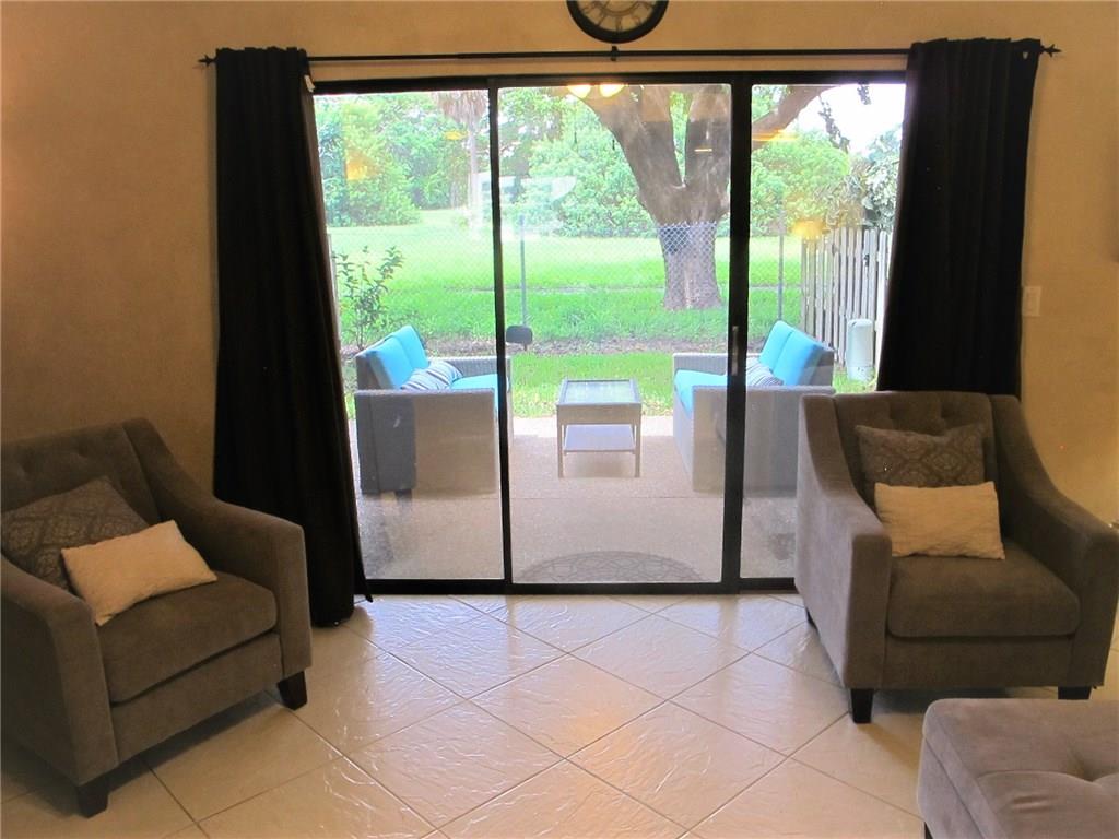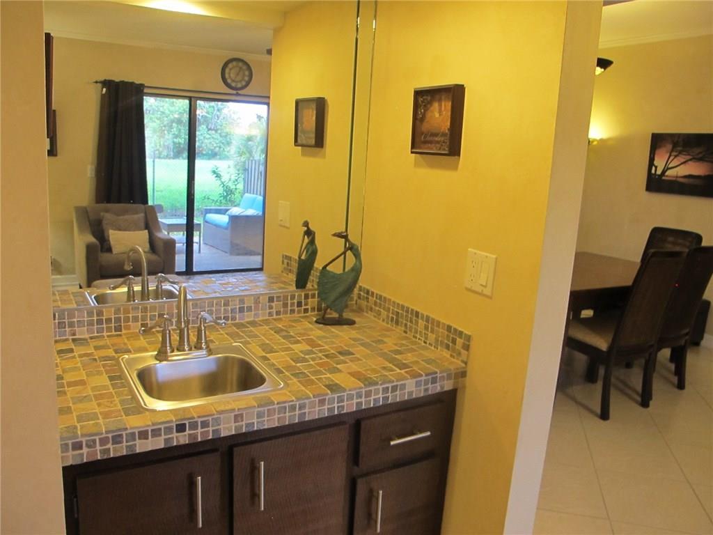 WELCOME! Peaceful views, Fully Updated, Impeccable Pet Friendly TH. Officially 2/2.5, & Office/3rd bedr, guest bath, 1 garage, 1 carport, +2 Deeded parking = total 4 Priv PLUS Guest Parking. Front private courtyard, foyer, tiled open floor plan kit/din/liv back patio & garden, inspire good times w/family/friends. Real hardwood floor upstairs, Master Bedr w/sitting area & views. Newly painted, "move-in" ready. Perfect for BBQs, fun, relaxing & chilling. LOW $125/m Assoc, hurric shutters, Near I95,Turnpike