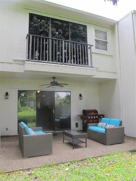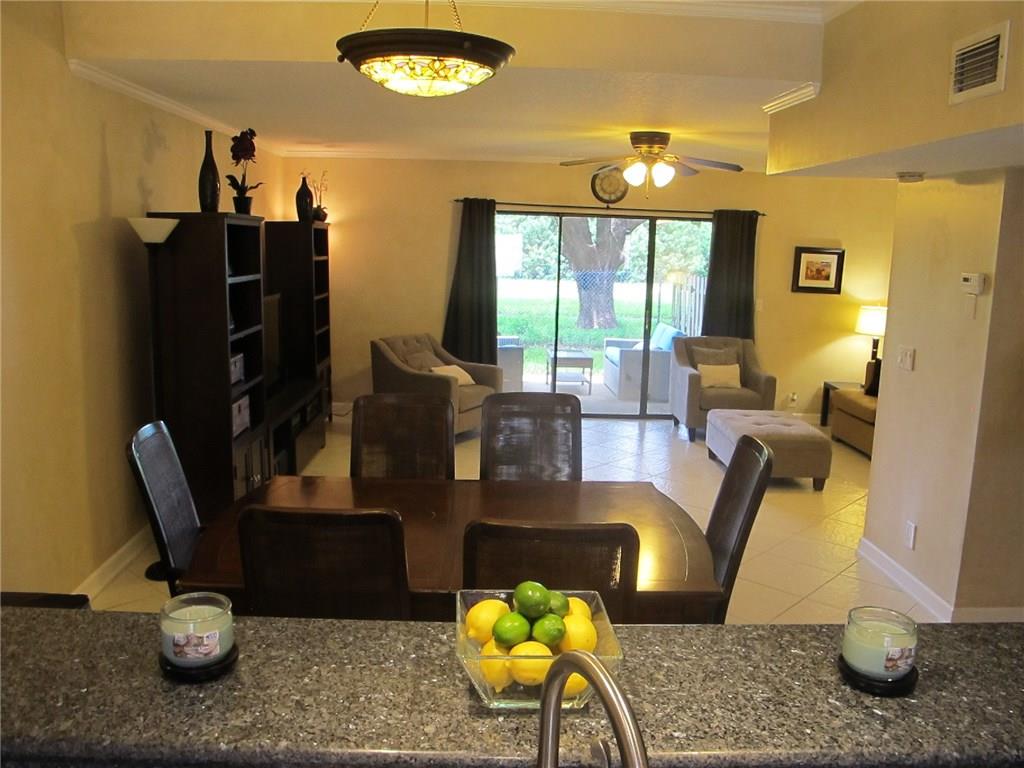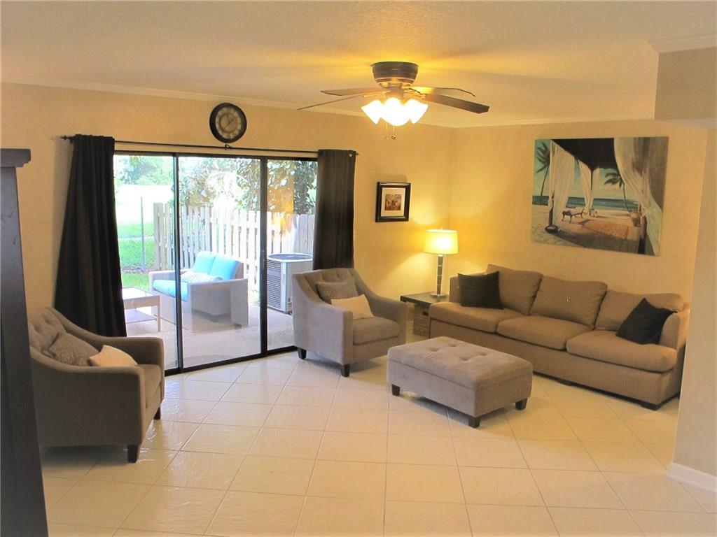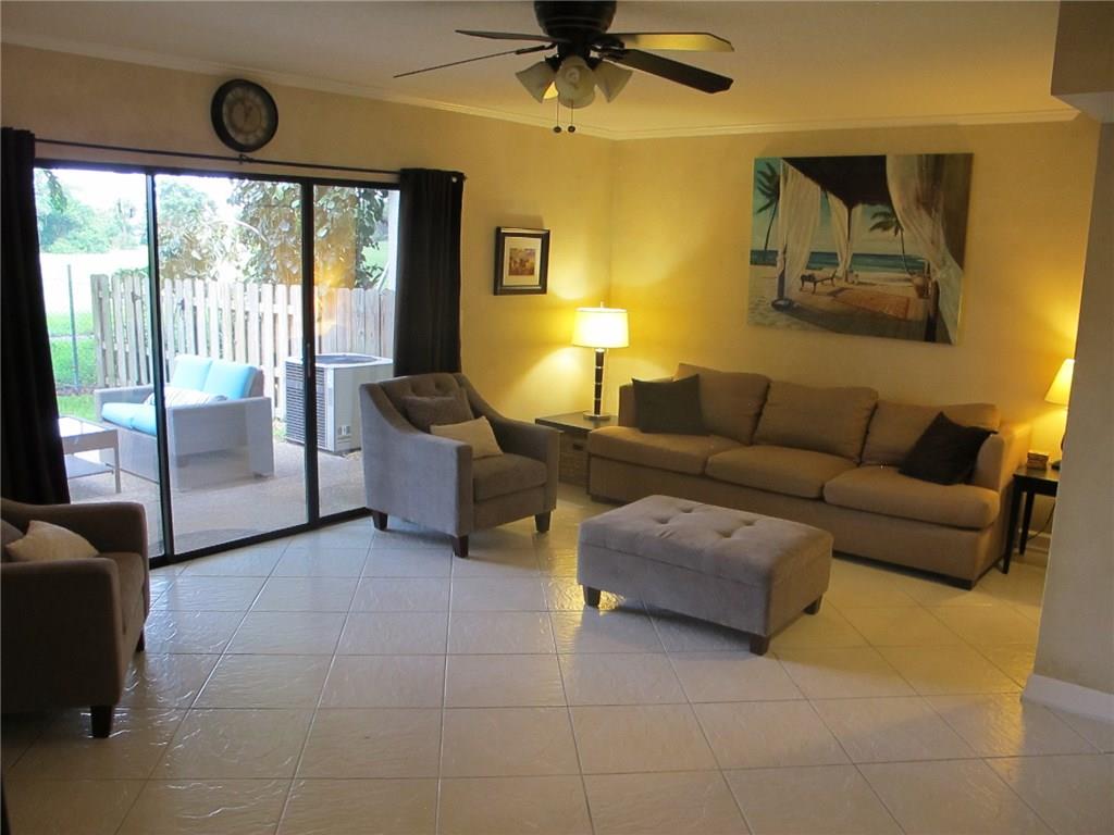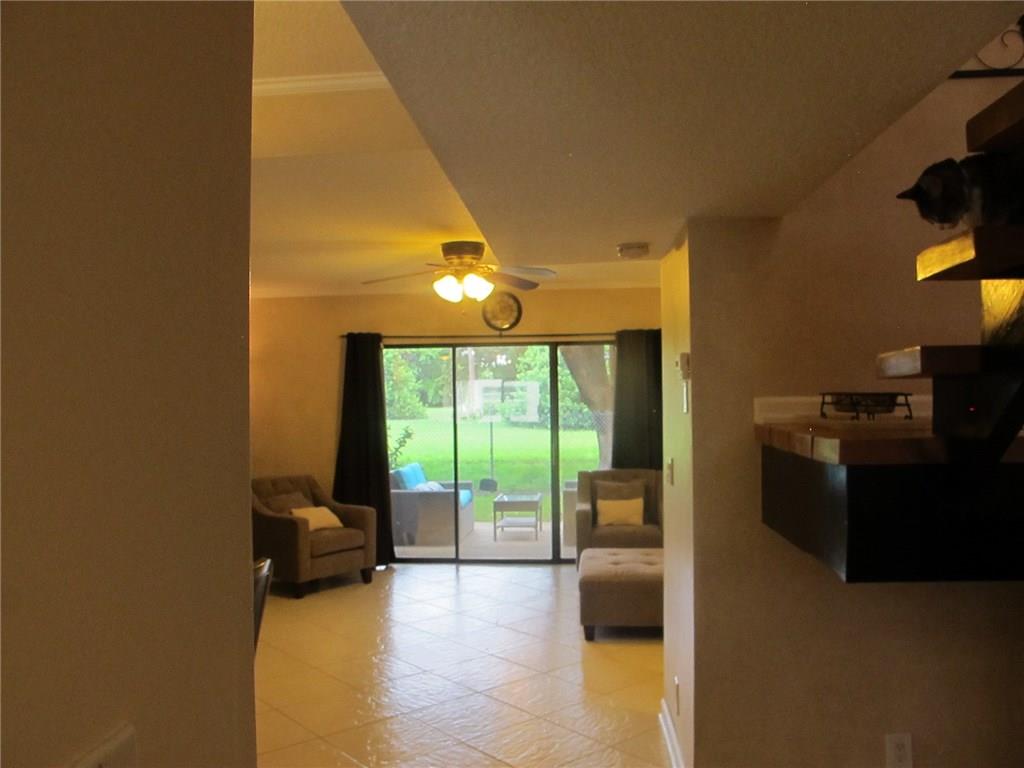 WELCOME! Peaceful views, Fully Updated, Impeccable Pet Friendly TH. Officially 2/2.5, & Office/3rd bedr, guest bath, 1 garage, 1 carport, +2 Deeded parking = total 4 Priv PLUS Guest Parking. Front private courtyard, foyer, tiled open floor plan kit/din/liv back patio & garden, inspire good times w/family/friends. Real hardwood floor upstairs, Master Bedr w/sitting area & views. Newly painted, "move-in" ready. Perfect for BBQs, fun, relaxing & chilling. LOW $125/m Assoc, hurric shutters, Near I95,Turnpike
