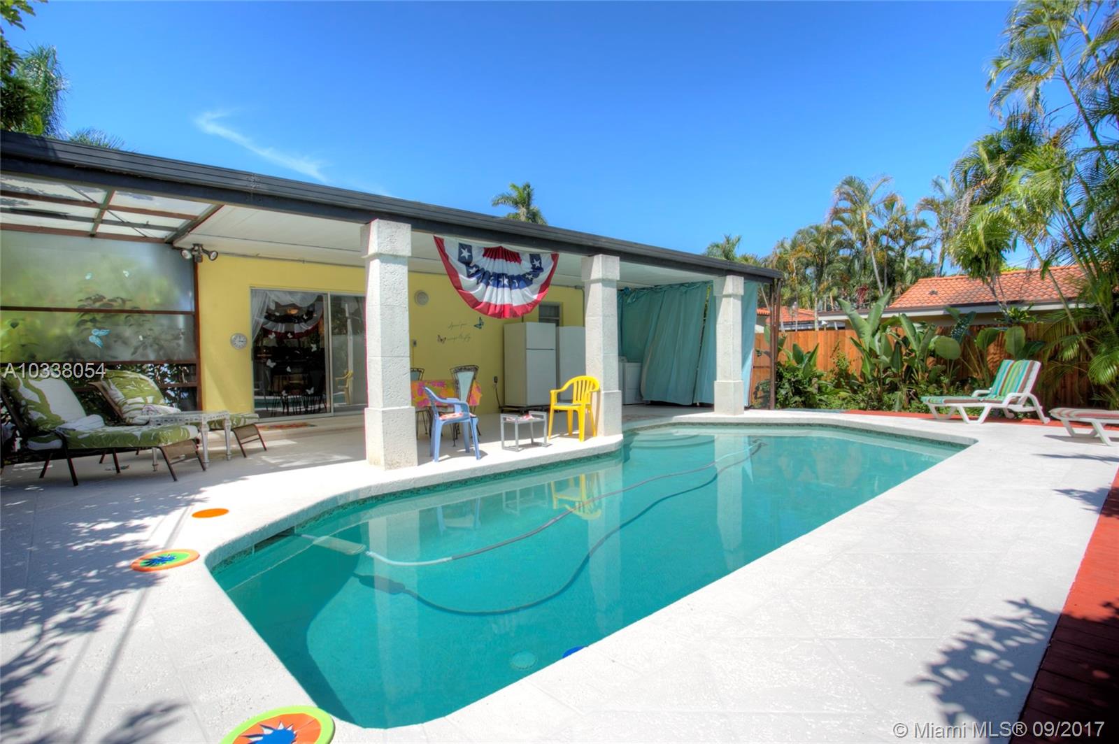 This 2/2 home is filled with charm and located in the heart of beautiful Hollywood Lakes. Owners have maintained it with utmost care. Property has hardwood floors in the living area and bedrooms, and Italian tile in the kitchen and Florida room. Home has a newer water heater, A/C and plumbing. Exit the back doors into your own pool oasis complete with travertine tile and covered patio. Own this gem in desirable Hollywood for under $400k!