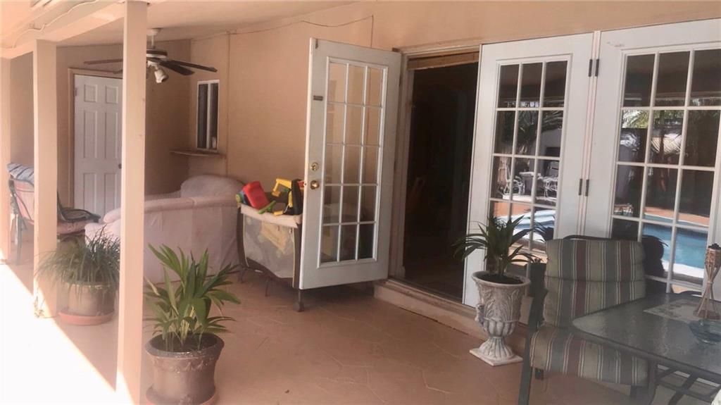 This beautiful, prestigious Enchanted Lake property has 4 bedrooms, 2 baths with an outside cabana bath; entire house (int/ext) & circular driveway were freshly painted, completely fenced yard for additional privacy. The windows, AC unit, and roof are newer; bathrooms and custom kitchen are recent; high, vaulted ceiling and open layout; enclosed Florida Room sitting off the master bedroom. French doors open to the large backyard with a covered patio overlooking the clear blue pool water and fruit trees!