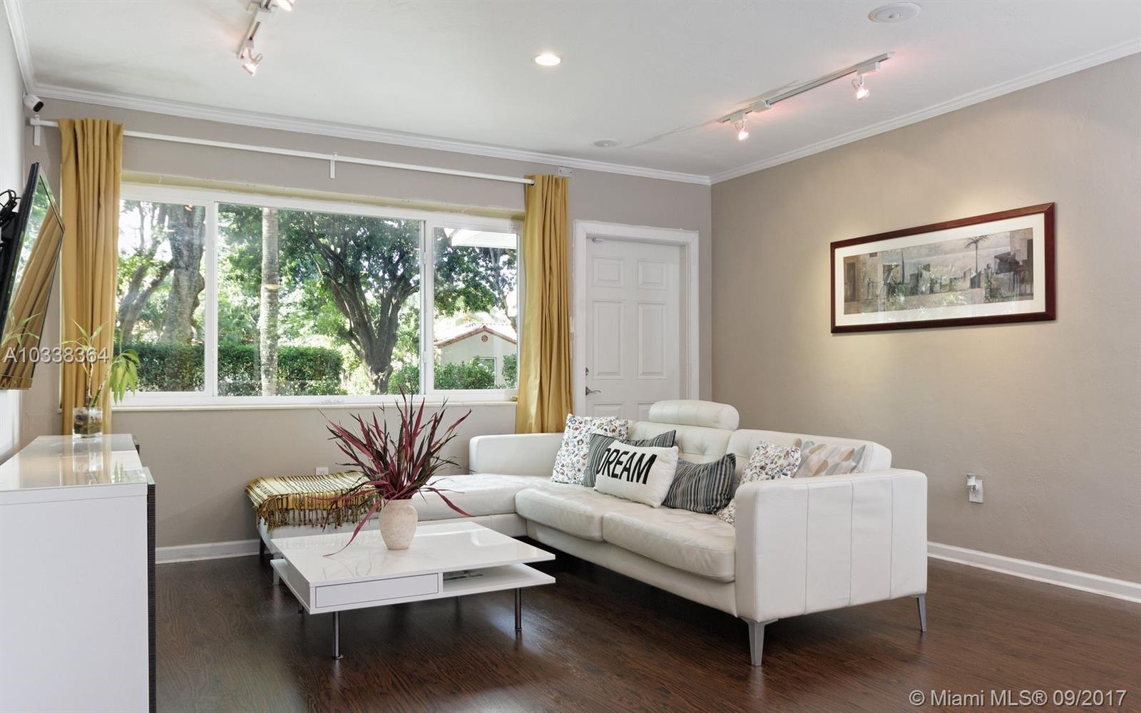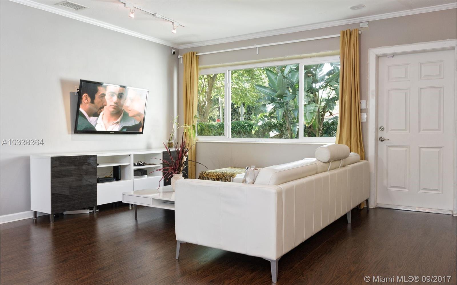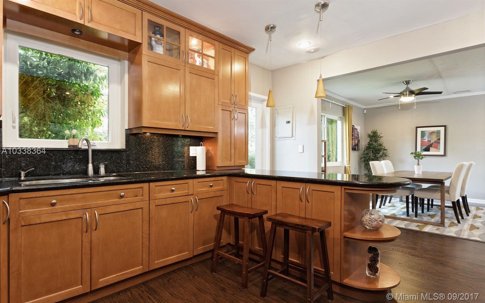 IMMACULATE MIAMI SHORES HOME ON A LUSHLY LANDSCAPED CORNER LOT, QUIET STREET. PRIVATE BACKYARD WITH BIG DECK AND ROOM FOR A POOL. ATTACHED ONE CAR GARAGE. 2 BEDROOMS AND 2 FULL BATHS. OPEN LIVING SPACES PLUS KITCHEN IS OPEN TO ENTERTAINING AREA. UPDATED KITCHEN AND BATHS, HURRICANE IMPACT WINDOWS. WOOD FLOORS, CENTRAL A/C. MOVE IN CONDITION.