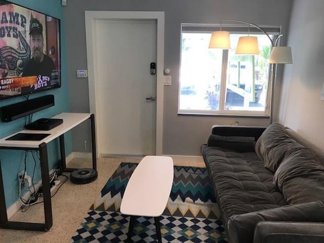 Here is a lovely extensively renovated home. 2015 all impact doors and windows AC, electric panel and water heater including new roof. Beautiful large backyard completely fenced in with Avocado and other fruit trees in bloom. Well kept buffed terrazzo floors throughout. Updated kitchen quartz counters and brand new washer dryer and high tech smart phone capable alarm system.2 bed 1 bath home.Carport. Located on quiet street yet central to downtown, Beaches, and major highway connections. Cozy nest
