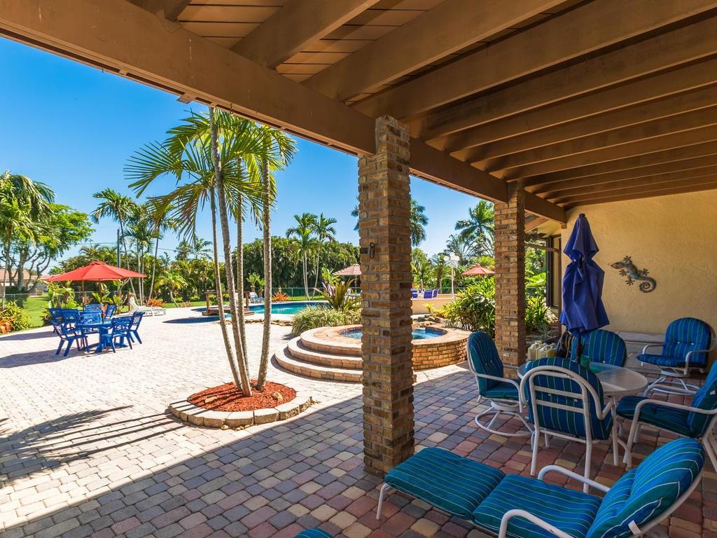 Spectacular 5BD ,4BTH custom built home. Resort style swimming pool/ & brook-water. Chicago brick paver deck. Covered patios, elevated jacuzzi, balcony w/ awning off master suite. Designer, remodeled kitchen w/extensive cabinetry, granite island, SS appliances & double ovens. Expansive breakfast area, pantry. formal dining & living rooms. 3 fireplaces plus amazing built in bar for entertaining - family room. Remodeled bathrooms. Hurricane Shutters. This home is a must see! **Builders Acres Lot