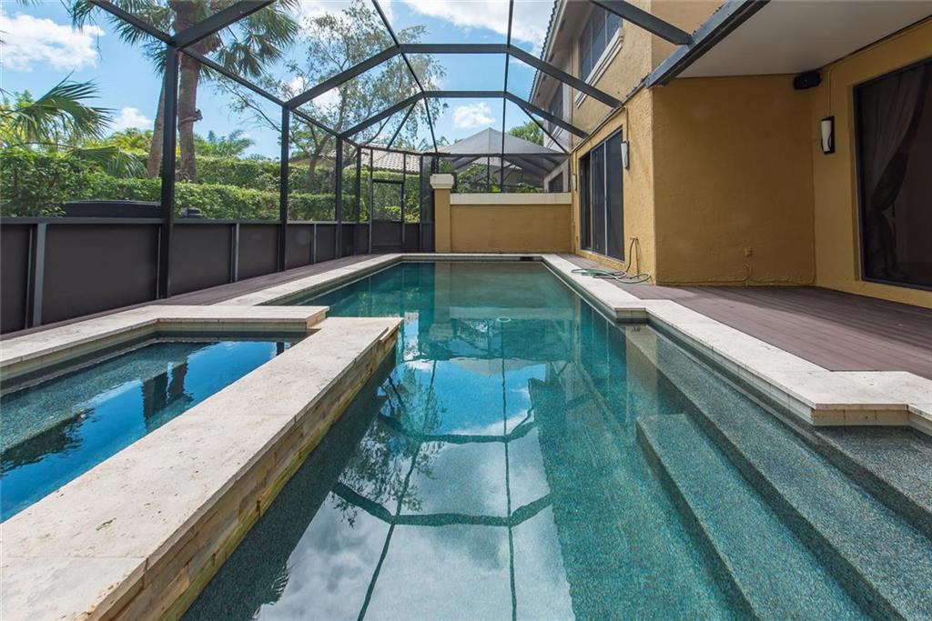 Magnificent, spacious town-home with hardwood floor throughout located in the sought after Boca Pointe. Perfect for entertaining. Redone kitchen & bathrooms w/granite counters & wood cabinets. Formal dining room w/cove ceilings. Patio overlooking beautiful pool/spa & community park/green area. Balcony upstairs leads to guest quarters, this room can be a maid's room, art studio, exercise studio, bedroom, bonus room.