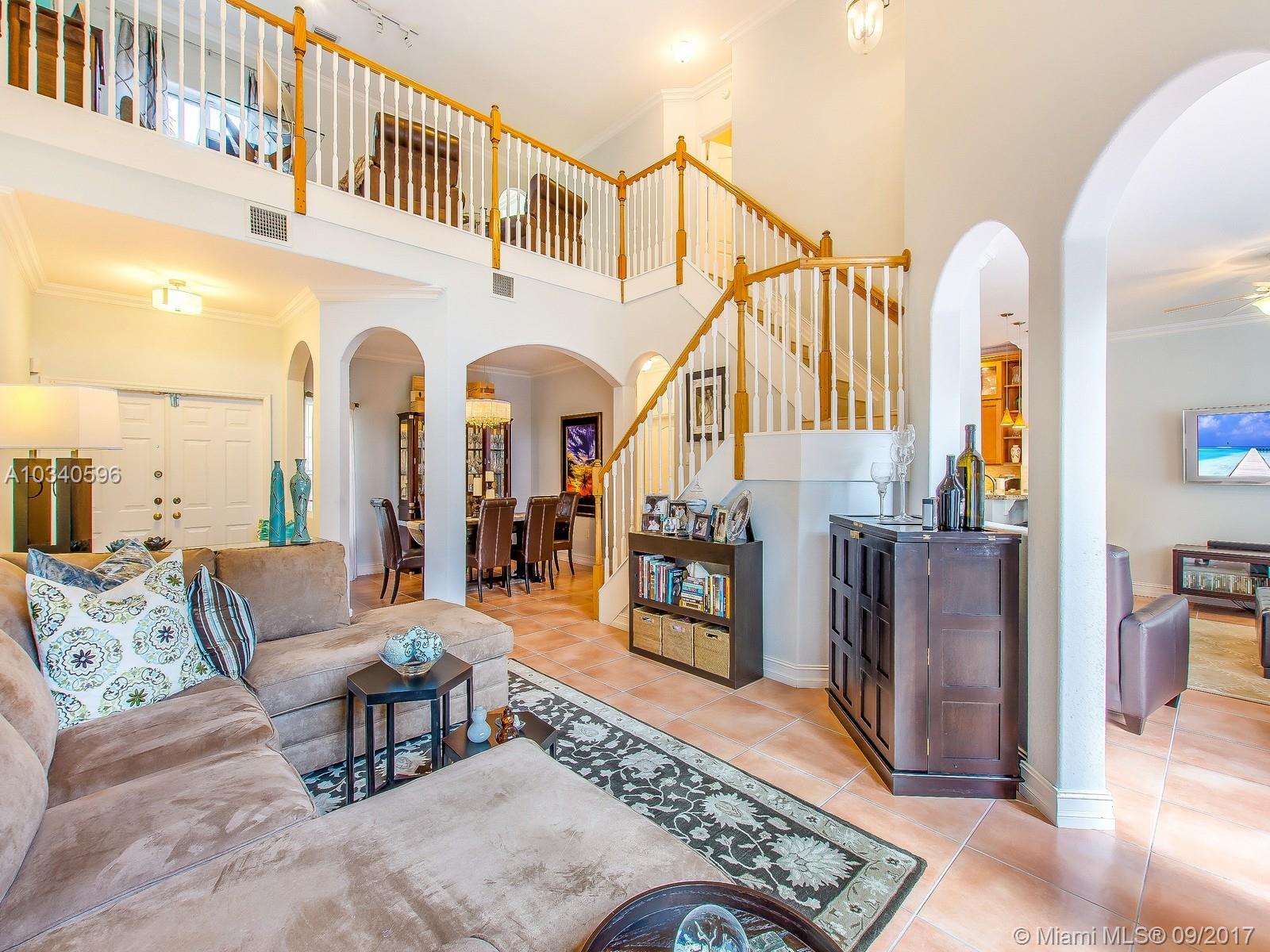 Impeccably designed Townhome in Las Cascadas. Remodeled kitchen features granite tops, Kenmore PRO Stainless Steel appliances, wine chiller with butcher block, stone tiled backsplash, new cabinets, eat-in bar with pendent lights, indoor laundry room, accordion shutters. First floor finished in tile, crown molding, updated half bath with designer touches and two car garages professionally finished. the second floor features laminate wood floors, custom closets throughout, open loft sitting area, updated master bath with dual sinks, separate soaking tub/shower/bidet/marble shower with new fixtures. Fenced patio allows for entertaining. This turnkey townhome is for those who demand excellence!