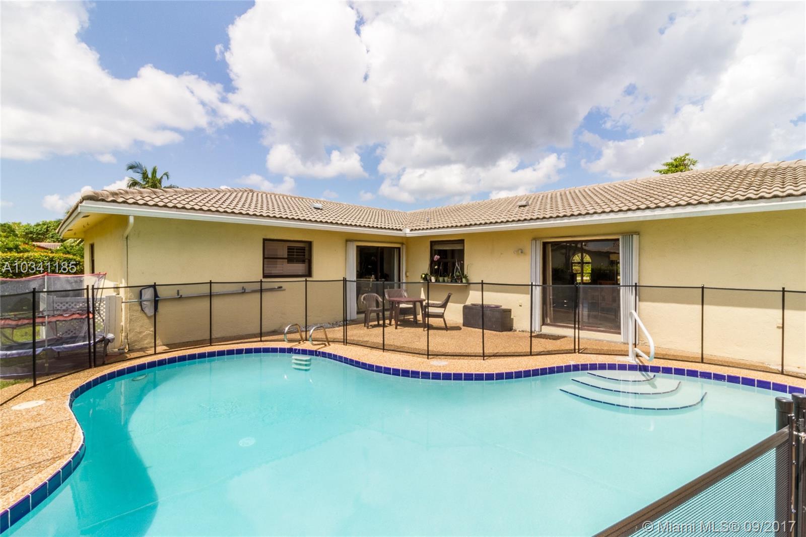 BEAUTIFULLY AND TOTALLY UPDATED SPACIOUS 2790 SQ.FT. POOL, CORNER HOUSE WITH HURRICANE IMPACT WINDOWS NO HOME OWNERS FEES MOVE IN READY. POOL WAS REPAVED WITH CHILD FENCE AND NEW PUMP. GREAT NEIGHBORHOOD WITH HIGHLY RATED SCHOOLS. CENTRALLY LOCATED TO THE SAWGRASS EXPRESSWAY AND SHOPPING AREAS. LARGE 2 CAR GARAGE WITH 4 CAR DRIVE WAY