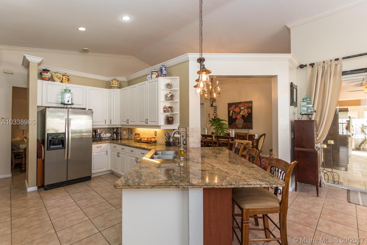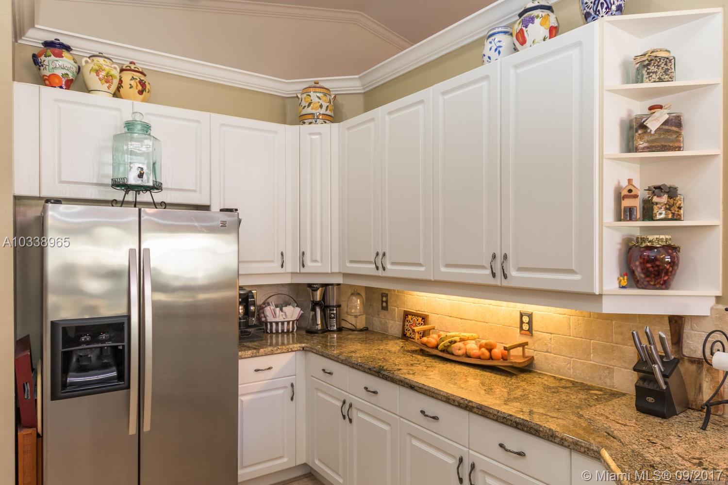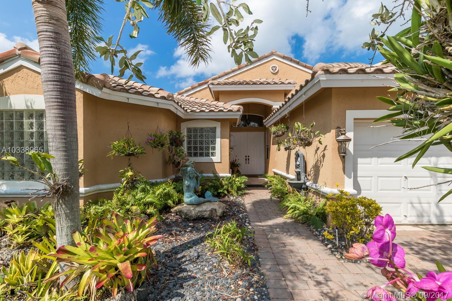 REDUCED! Fully updated home with 5 bed, 4 bath & 3 car garage. Beautiful 400 sq. Ft. covered travertine patio. Custom built in closets. Split bedroom plan. Large master suite has renovated en suite with jetted tub and huge shower, carrera marble counters and tile throughout, custom solid wood designer cabinets in his and hers walk in closets. Large open kitchen has huge custom built granite counter, tumbled marble back splash and stainless appliances. House is full of upgrades, French doors, custom molding, vaulted ceilings. Freshly painted in and out, new a/c unit and tank less water heater for energy efficiency. Beautifully landscaped tropical garden with orchids everywhere. Room for a pool. Association has huge resort style pool, kiddy pool, tennis, volley & basket ball, gym, party rm.