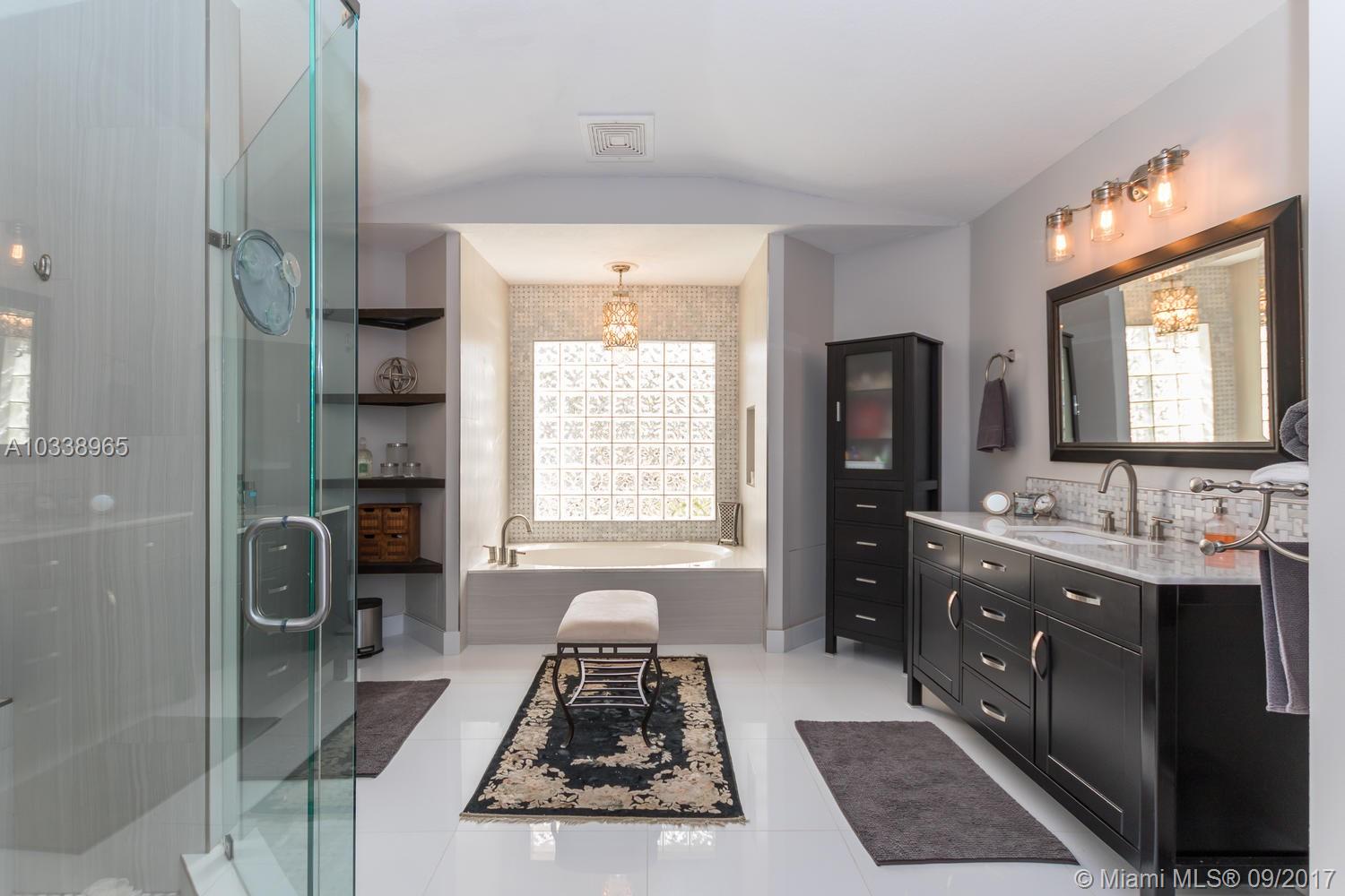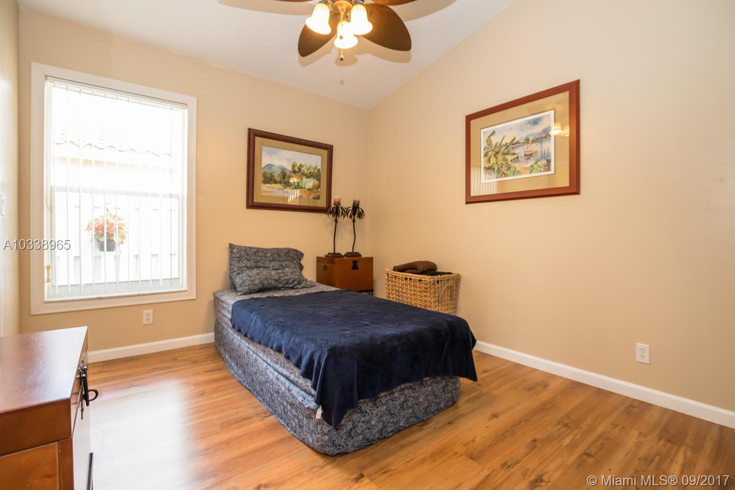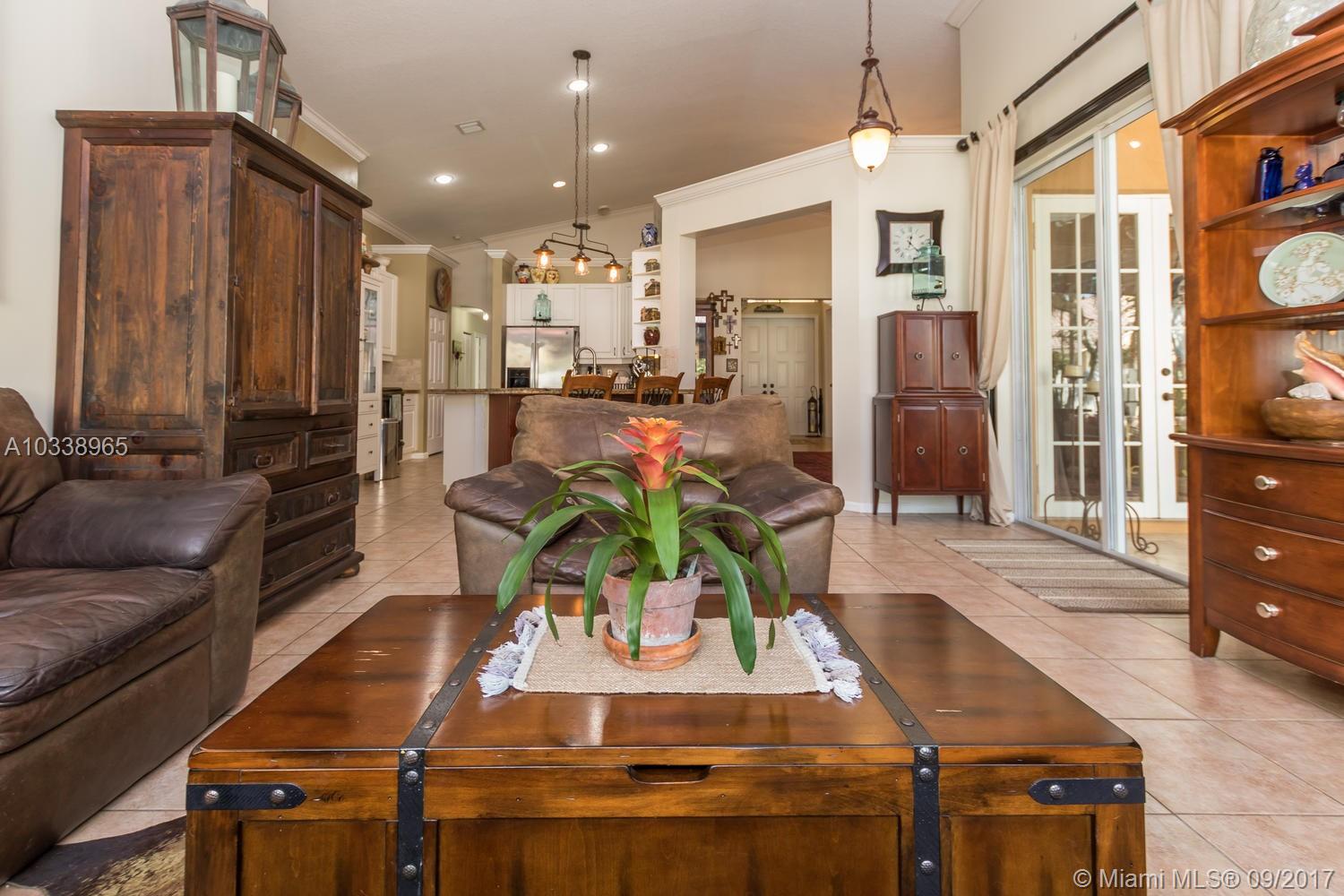 REDUCED! Fully updated home with 5 bed, 4 bath & 3 car garage. Beautiful 400 sq. Ft. covered travertine patio. Custom built in closets. Split bedroom plan. Large master suite has renovated en suite with jetted tub and huge shower, carrera marble counters and tile throughout, custom solid wood designer cabinets in his and hers walk in closets. Large open kitchen has huge custom built granite counter, tumbled marble back splash and stainless appliances. House is full of upgrades, French doors, custom molding, vaulted ceilings. Freshly painted in and out, new a/c unit and tank less water heater for energy efficiency. Beautifully landscaped tropical garden with orchids everywhere. Room for a pool. Association has huge resort style pool, kiddy pool, tennis, volley & basket ball, gym, party rm.