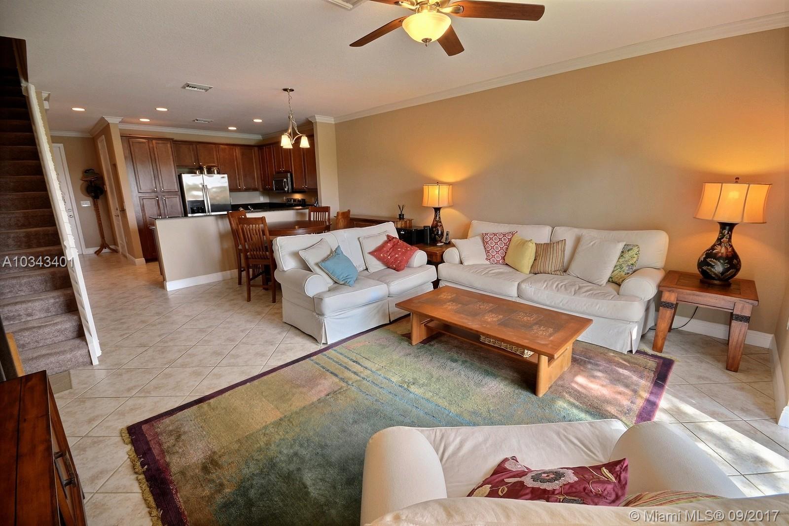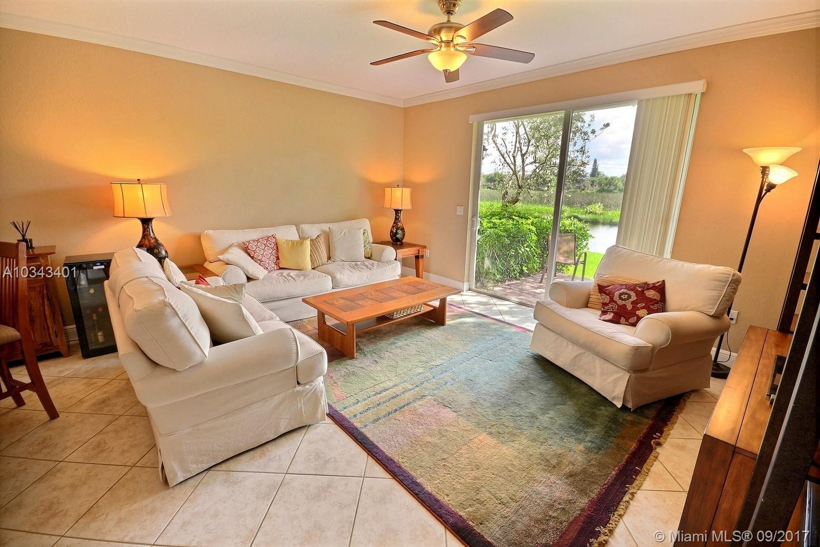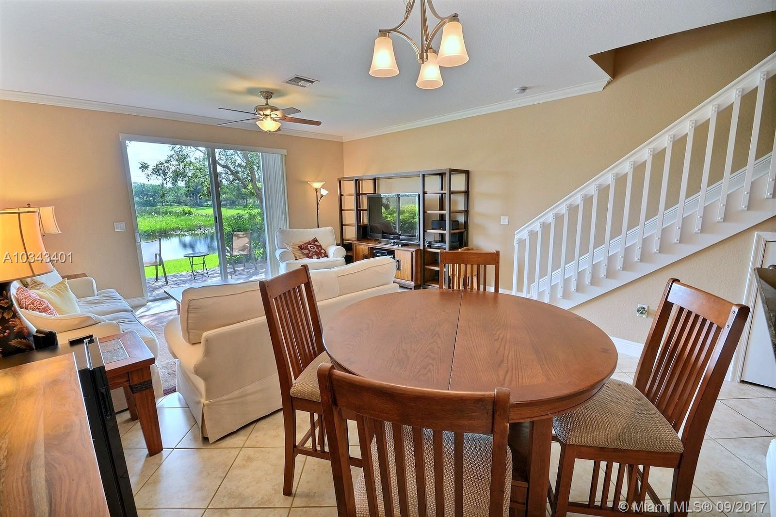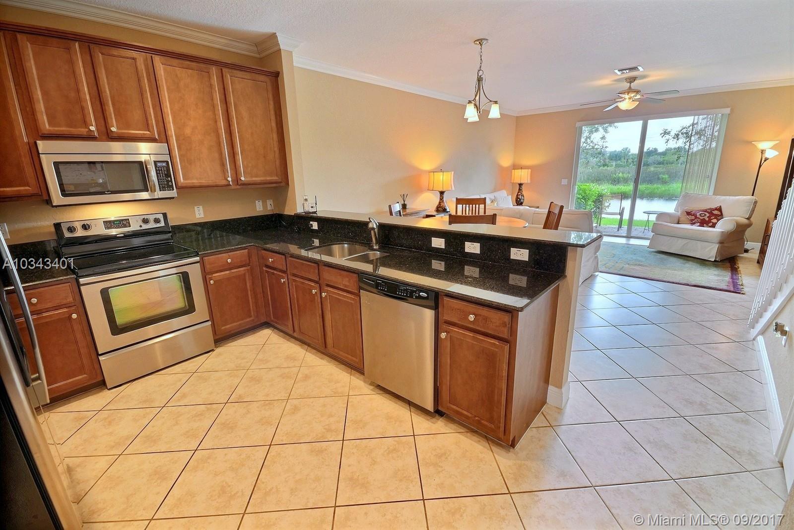 AMAZING WATERFRONT 3 BED, 2.5 BATH TOWNHOME IN THE HEART OF DAVIE. HOME FEATURES BEAUTIFUL OPEN KITCHEN W STAINLESS STEEL APPLIANCES, GRANITE TOPS AND EAT IN COUNTER. TILE FLOORS ON FIRST LEVEL; CROWN MOLDING ON FIRST LEVEL AND MASTER BEDROOM, MASTER BATH WITH DOUBLE VANITIES. ELEGANT FIXTURES AND PAINT. LAUNDRY ON SECOND LEVEL, HURRICANE IMPACT WINDOWS AND ONE CAR GARAGE. SPARKLING COMMUNITY POOL AND TOT PLAY AREA.