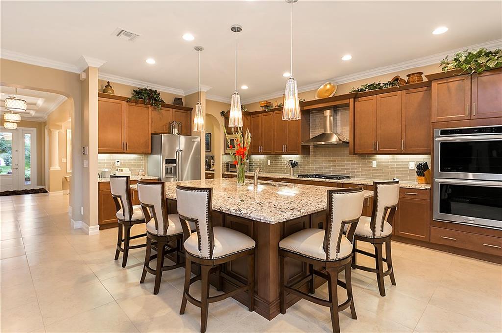 NO WAITING TO BUILD! BEAUTIFULLY UPGRADED WITH TOP OF THE LINE FINISHES! GLASS DOOR FOYER ENTRANCE, GREAT ROOM, OFFICE/DEN, CASUAL & FORMAL DINING ROOMS & HUGE LOFT! THE KITCHEN OFFERS WOOD CABINETS, GRANTIE COUNTERS, TWO PANTRYS, KITCHEN AID SS APPLIANCES & CENTER ISLAND! 20" TILE AND WOOD FLOORING, BUILT-IN CLOSETS, SMOOTH WALLS, TRAY CEILINGS, CROWN MOLDING, DESIGNER LIGHTING, IMPACT GLASS & SO MUCH MORE! TROPICAL LANDSCAPING, SCREENED PATIO, SUMMER KITCHEN AND FENCED YARD! GREAT COMMUNITY AMENITIES!
