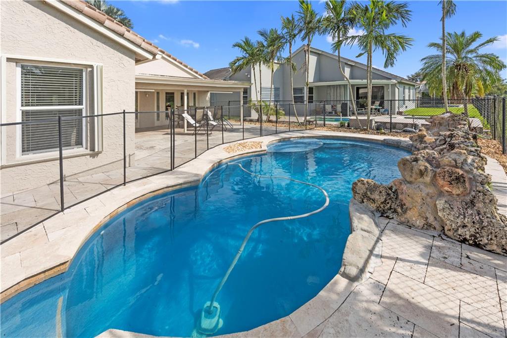 Beautiful 4 bedroom, 3 bathroom waterfall feature pool home in community of The Ridge on Nob Hill, overlooks tranquil protected preserve. Wood cabinets with Corian countertops and stainless steel appliances. 3 car garage with epoxy floor finish. Vaulted ceilings. Updated bathrooms. Ready to move in. Note: Dining room chandelier excluded.