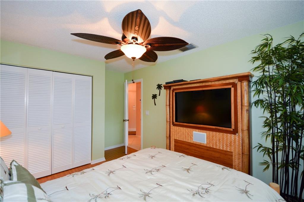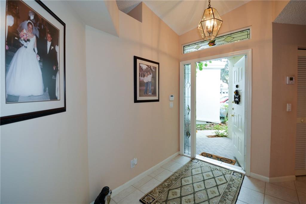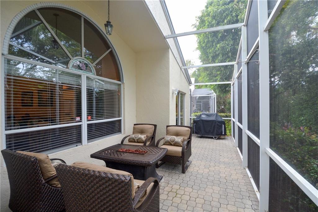 Rock solid one-story home in coveted Central Park/Jacaranda neighborhood has new roof (2016), new a/c (2015) and new water heater (2015) with custom shutters for hurricane protection. Airy volume ceilings create drama in the living and dining room and there is a super large kitchen/breakfast area. A private screened patio provides a focal point, with an emphasis on outdoor living. New wood blinds (2016) and laminate floors in secondary bedrooms. Gated community with pool has low maintenance fees.