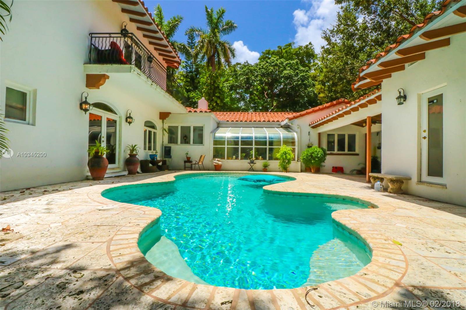 Beautiful Old Spanish located in the heart of Coral Gables. Large 16,400 sq. ft. corner lot lushly landscaped with royal palms and mature oak trees surrounding the coral rock walled-in grounds, along with a large free form pool. Home offers over 5,300 square feet with 6 bedrooms, 5 baths and with a 2 bedroom 1 bath guest house with private entrance. This is a spectacular historic Coral Gables home with large spaces located in a most desirable location. It has 2 working fireplaces, music room, sun-room