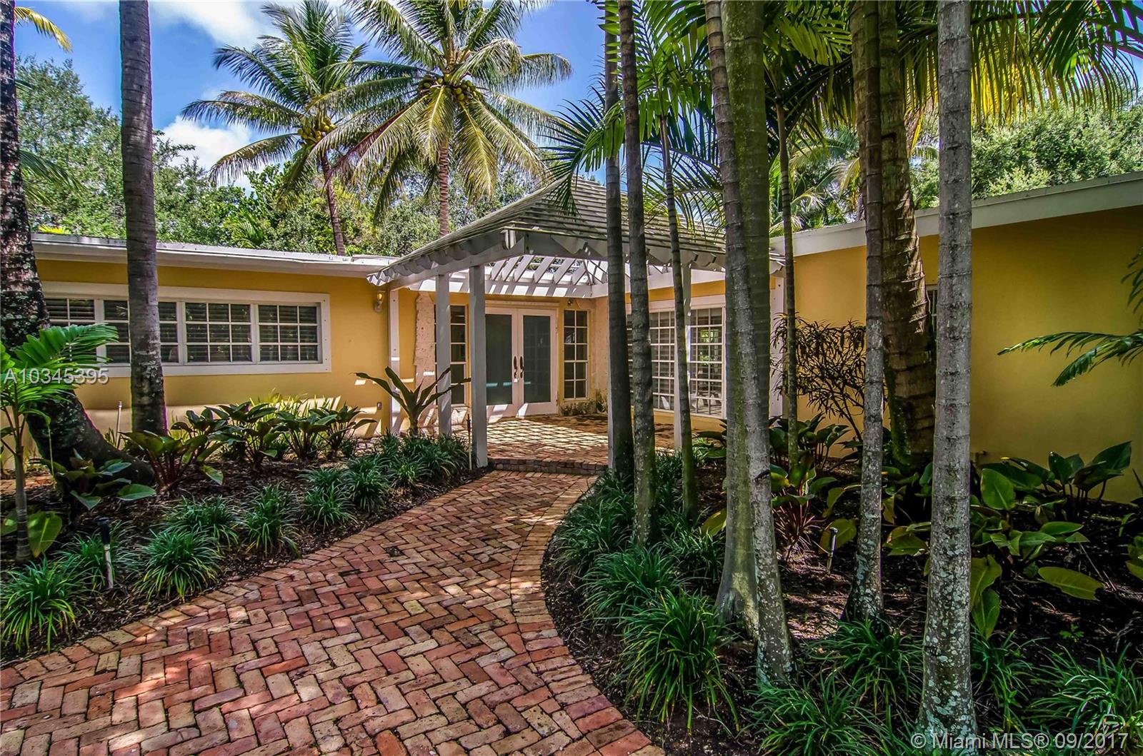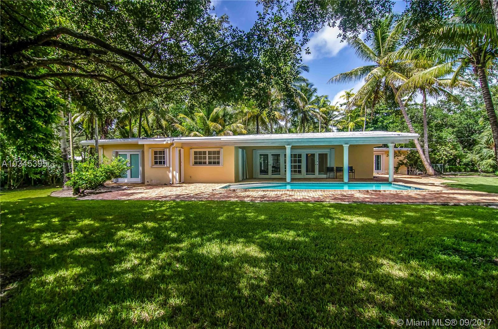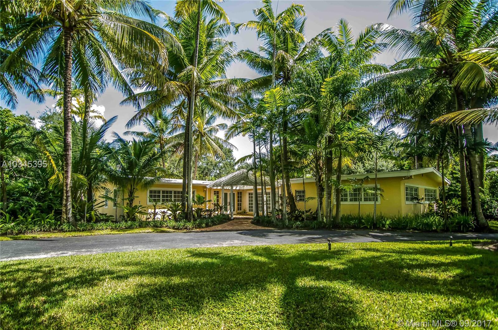 Charming & warm residence on an expansive acre lot in North Pinecrest filled with dozens of coconut & fruit trees. Ideal for those looking for a private, family-friendly setting in one of Miami's most desirable locations & its top-rated school system. Interior home features include a newly updated kitchen, open floorplan, polished Mexican tile throughout, & abundant natural light. Exterior features include a long circular drive-way for ample guest parking, Chicago brick pavers in front and back w/ a large swimming pool that opens up to a large & lush back yard green space with plenty of room to entertain.