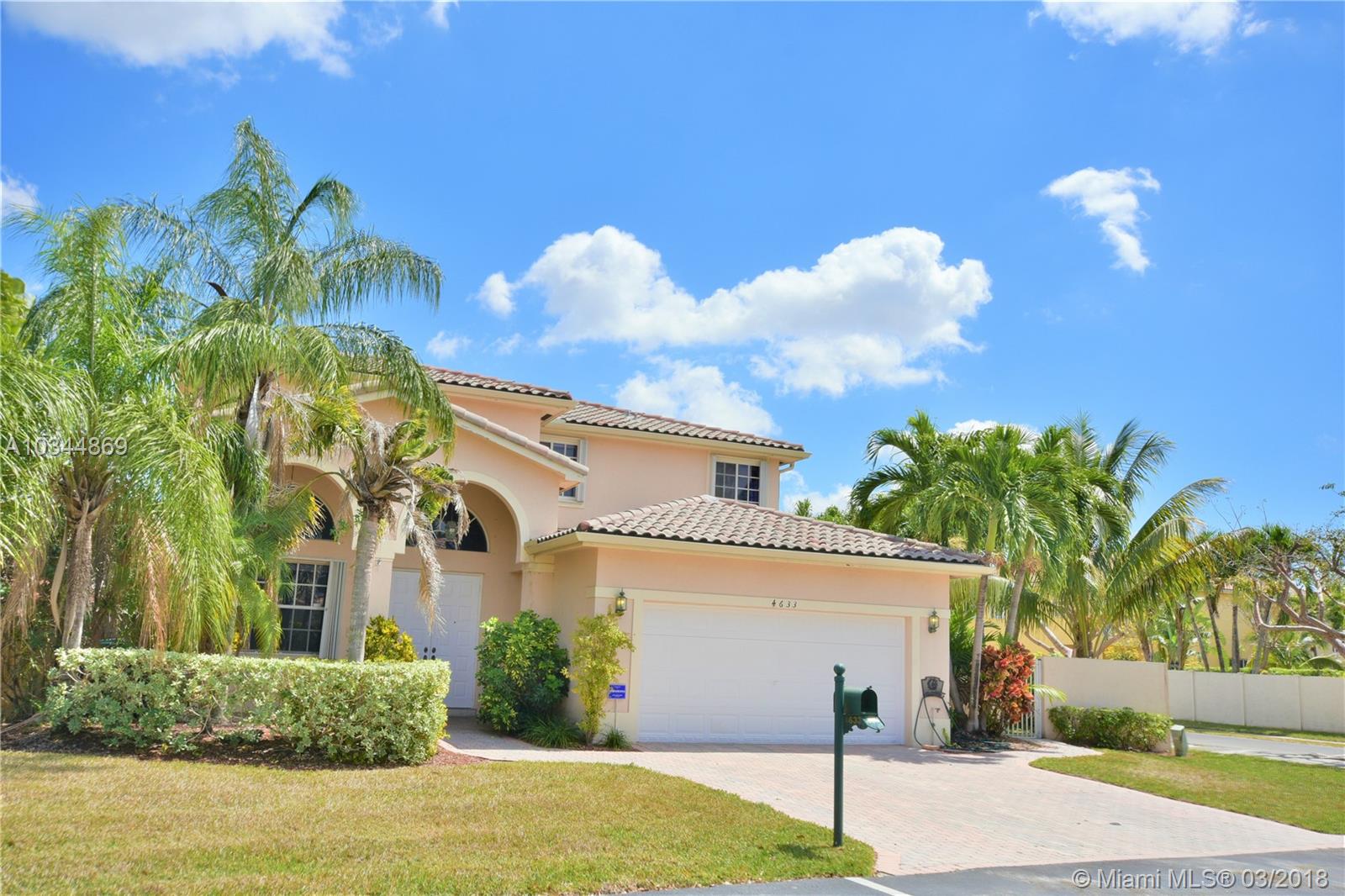 Elegant home located on a large Cul-de-Sac lot in the exclusive Gated Community of Goldvue Estates. Excellent central location in Doral. This 2 stories home features 3 bedrooms + DEN (EASILY CONVERTED INTO 4TH BEDROOM) 2 baths and a 1/2 bath on an oversized lot. Room for Pool. Wood Floor throughout the home. Kitchen features Granite counter top and Stainless Steel appliances. Spacious Family Room, Master suite with seating area, walk-in closet, Accordion Shutters. 2 cars garage, guest parking close to the property. Low HOA fees $235.00 a month include basic cable, alarm, and front lawn maintenance. Secure community w/ guard gated entrance 24 hours, Playground, and Pool Area**Seller Motivated**