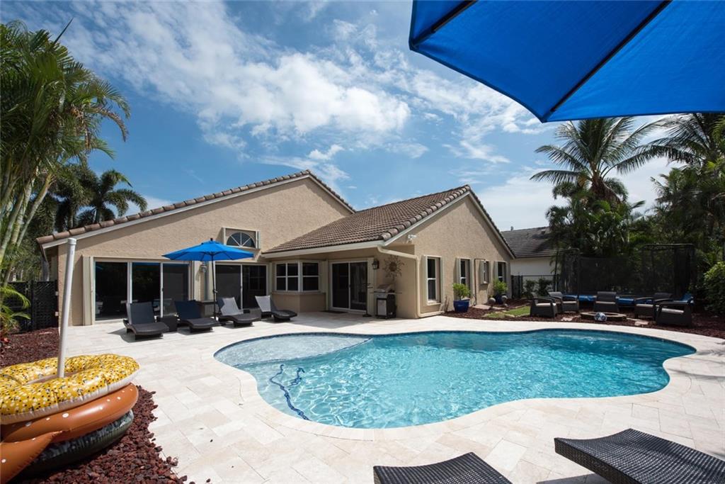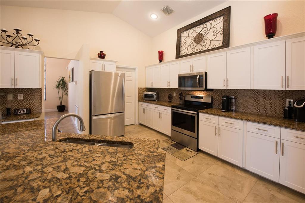 Bring your most discriminating buyers here. Completely renovated 3-2-1 SALT WATER FREE FORM POOL 2017. Expanded circular drive and patio W/PAVERS Sprinkler system, bordered landscape beds and lava rocked paths recently completed. Impact front door entry, freshly painted in and out. New flooring and baseboards Beautiful open kitchen granite and new SS appliances including W&D- features include walk in closets/organizers-high profile commodes- accordion shutters-laundry tub-pull down attic AC 2009