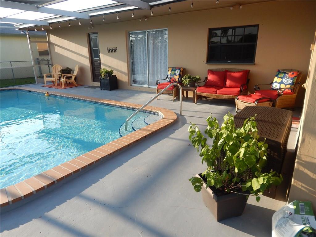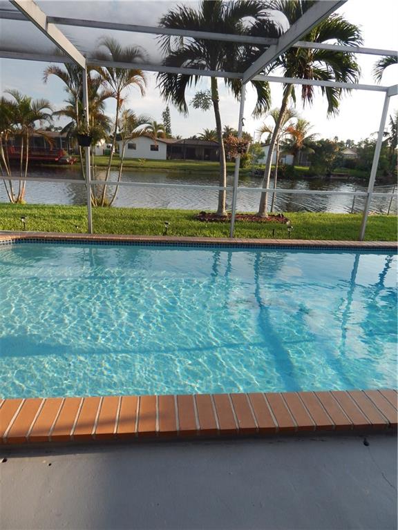Great family home. This 3/2 has it all. Screened in pool and lake make the back yard a paradise circle drive way for plenty of parking. Open floor plan with family dinning and living room. Gas stove allows for hurricane cooking and hurricane shutters for protection. Upgraded cabana bathroom. There is no association fees and this home is easy to show. Close the doors right away so the cats wont get out. Curtains and curtain rods do not stay with the house, sellers will take them with them. Blinds stay
