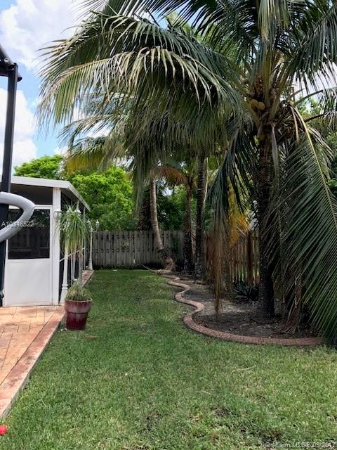 1 STORY CORNER HOME IN A WELL-KEPT COMMUNITY. CHARMING 3-BEDROOM 2 BATH HOME WITH 1 ATTACHED GARAGE. OPEN KITCHEN WITH GRANITE AND STAINLESS-STEEL APPLIANCES. BRIGHT VAULTED CEILING WITH SKYLIGHTS. ENTERTAIN IN YOUR SPACIOUS BACKYARD IN A LARGE ENCLOSED SCREENED PATIO INCLUDING BUILD-IN BBQ AND SINK. PATIO AND BBQ AREA ON CONCRETE FLOOR WITH NICE KEYSTONE FINISH, FRUIT TREES. LOCATED NEAR SCHOOLS, THE PEMBROKE LAKES MALL AND OTHER AREA SHOPPING. LOW HOA FEES $85.00 PER MONTH.