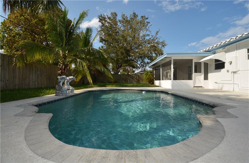 Charming 3BR/1BA home nestled in the Lyons Park neighborhood in East Pompano. Screened patio overlooks tropical, private yard and pool for year-round Florida entertaining. Kitchen features stainless appliances and granite counters. Neutral tile runs throughout living areas and bedrooms. Oversized utility room with washer and dryer with access from living room. Additional utility room with access from 2 car carport.