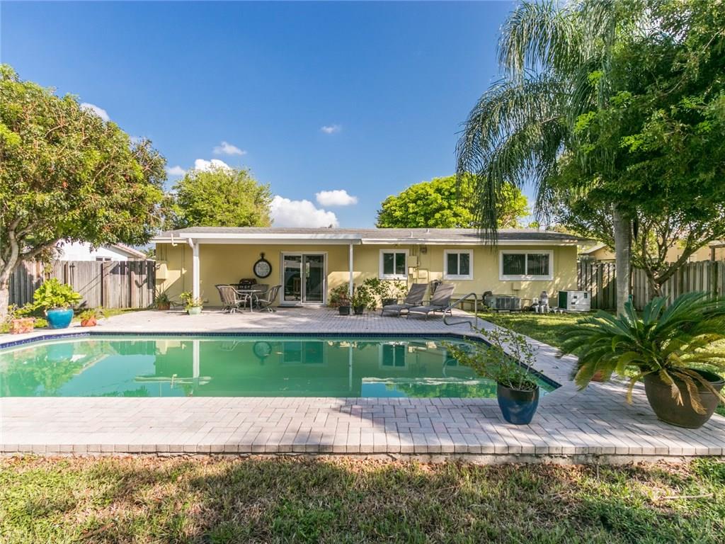Wow! Total remodel! Kitchen features granite counter tops and stainless steel appliances. Both baths were completely gutted, new electric, new flooring, and more. All hurricane impact windows and doors throughout the entire home. Huge fenced in backyard with large pool and pavered patio area! Nice sun shade awning to enjoy outdoor entertaining. 3rd bedroom is used as office/den. Laundry room with extra storage. Great neighborhood only a few miles to the beach. This move in ready home, just oozes charm!