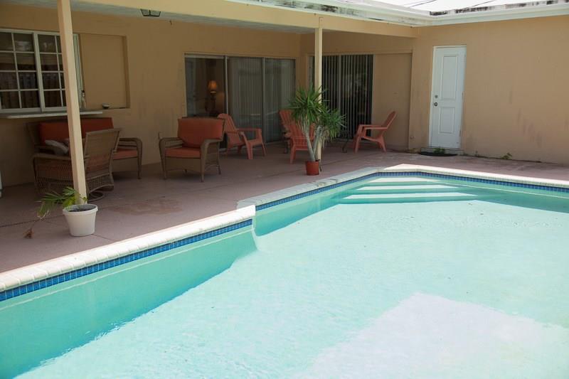 Great family pool home. Spacious 3BED 2BATH with 2 car garage. Large kitchen opens up to family room area with a sliding glass door to pool. New laminate wood flooring throughout, but kitchen and family room tile floor. Renovated master bath. Sliding glass door from Master bedroom, family room, and living room that open to the covered patio that is great for entertaining by the pool. Moving in condition. No association fees or restrictions. Circular drive way with plenty of parking space. Perfect opportun