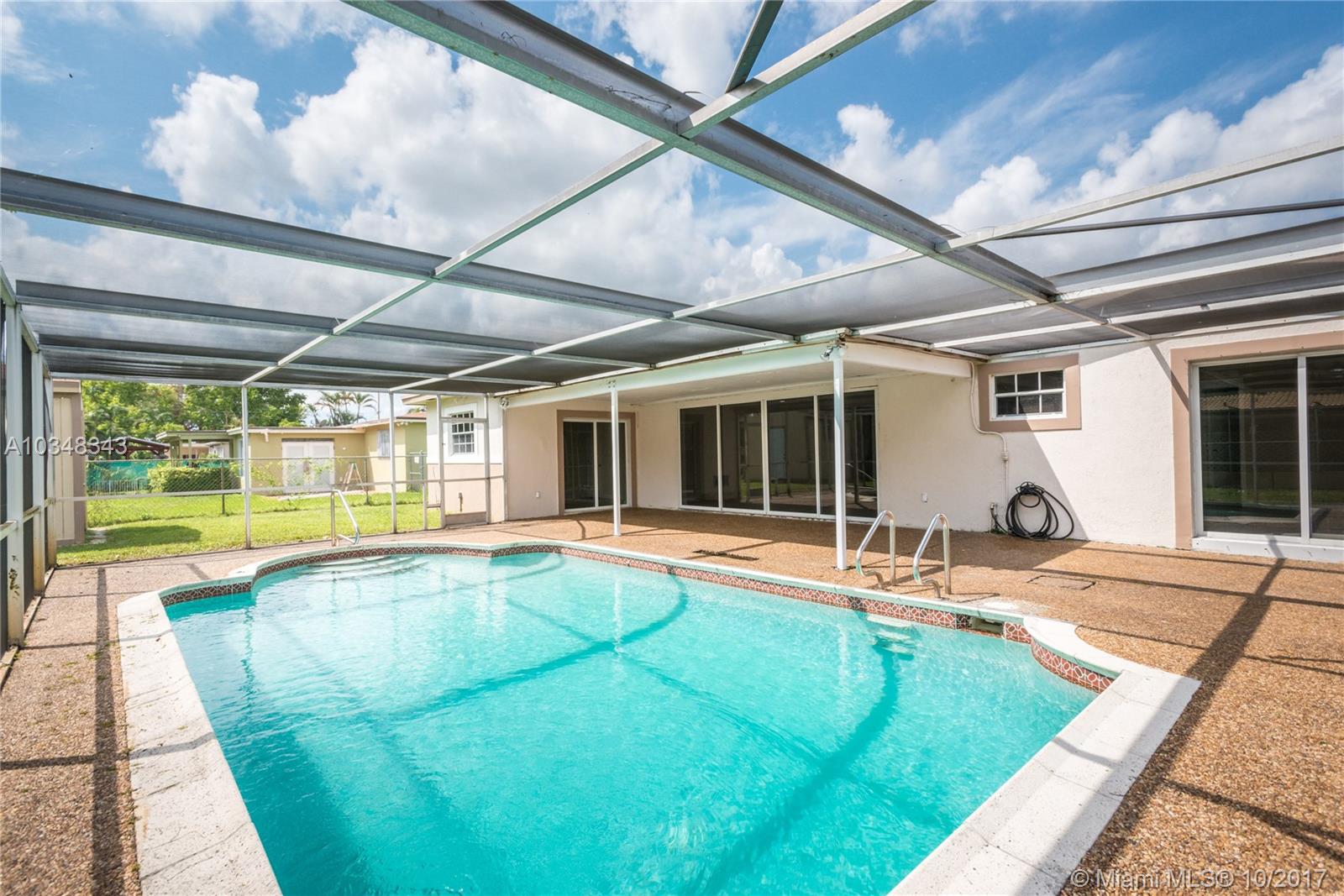 Immaculate pool home in great Pembroke Pines neighborhood on a quiet no-thru street. Updated kitchen with stainless steel appliances and renovated bathroom. Completely tiled throughout the home. Sparkling pool with screened in patio. Master bedroom with french doors to pool patio area. Spacious sleek backyard with chain link fenced-in yard and well sized storage shed. Great starter home that is move in ready.