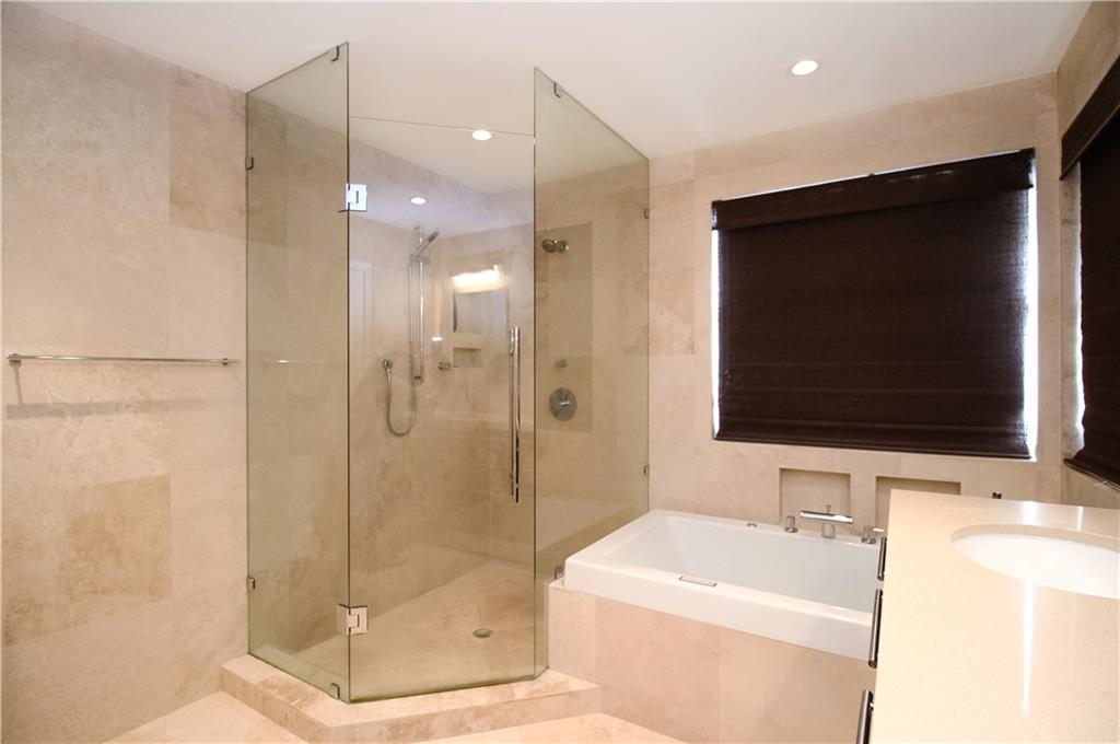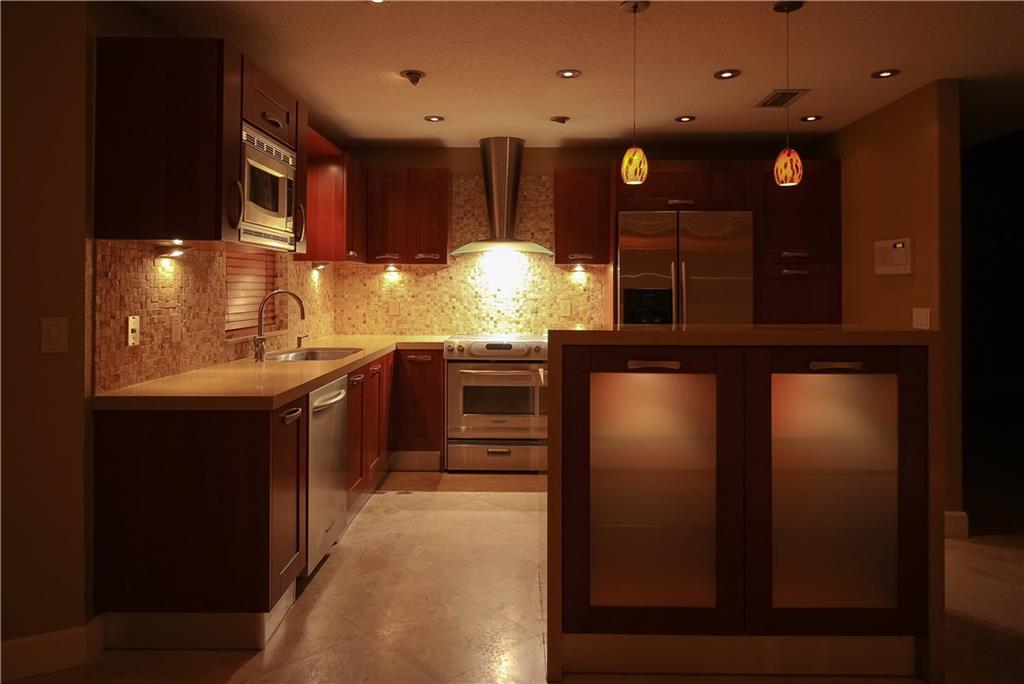 Stunning home completely remodeled! Kitchen has caesarstone countertops, real wood Italian cabinetry with soft close drawers and doors, decorative stone backsplash, built in bar in snack bar. Spectacular master bath and second full bath with all new top of the line fixtures, tiles, toilets, mirrors, etc. Custom lighting throughout home. Travertine on lower level, top quality laminate in bedrooms. Professional landscaping with lighting. Accordion shutters. Huge open space on side yard for privacy.