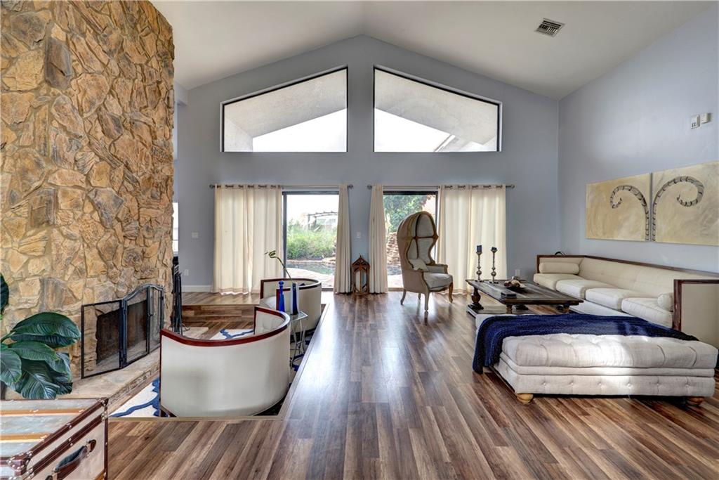 WOW!!!!! Substantially remodeled 4/2 custom (converted garage) corner lot POOL home,vaulted ceilings & open layout. Everything updated! Custom designed kitchen w/high end SS appliances & double oven, custom built cabinets w/soft close,granite counters, beautiful back splash, breakfast area & 2 snack bar islands. Tastefully painted. Newer wood floors throughout. Formal dining, Fireplace w/reading sitting area, 2 family rooms, sliding doors to make home open & bright & can see pool & patio from every room.