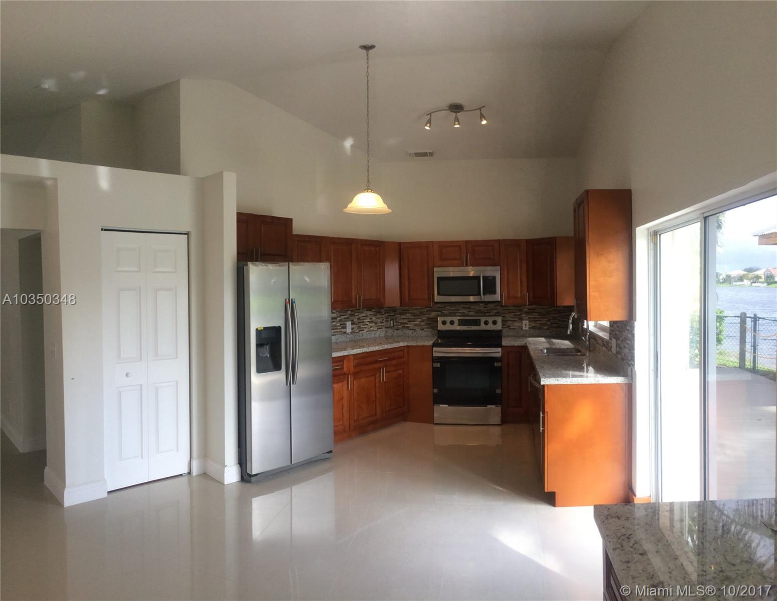 Gorgeous lakefront property in quiet and safe neighborhood. Completely remodeled, open style kitchen with granite countertops, stainless steel appliances and dining area. Upgraded bathrooms and rooms. Barbecue area in the back to relax and enjoy a nice evening with family and friends. 2 car garage, pavers in driveway and hurricane accordion shutters. Come for a visit and you won't be disappointed.