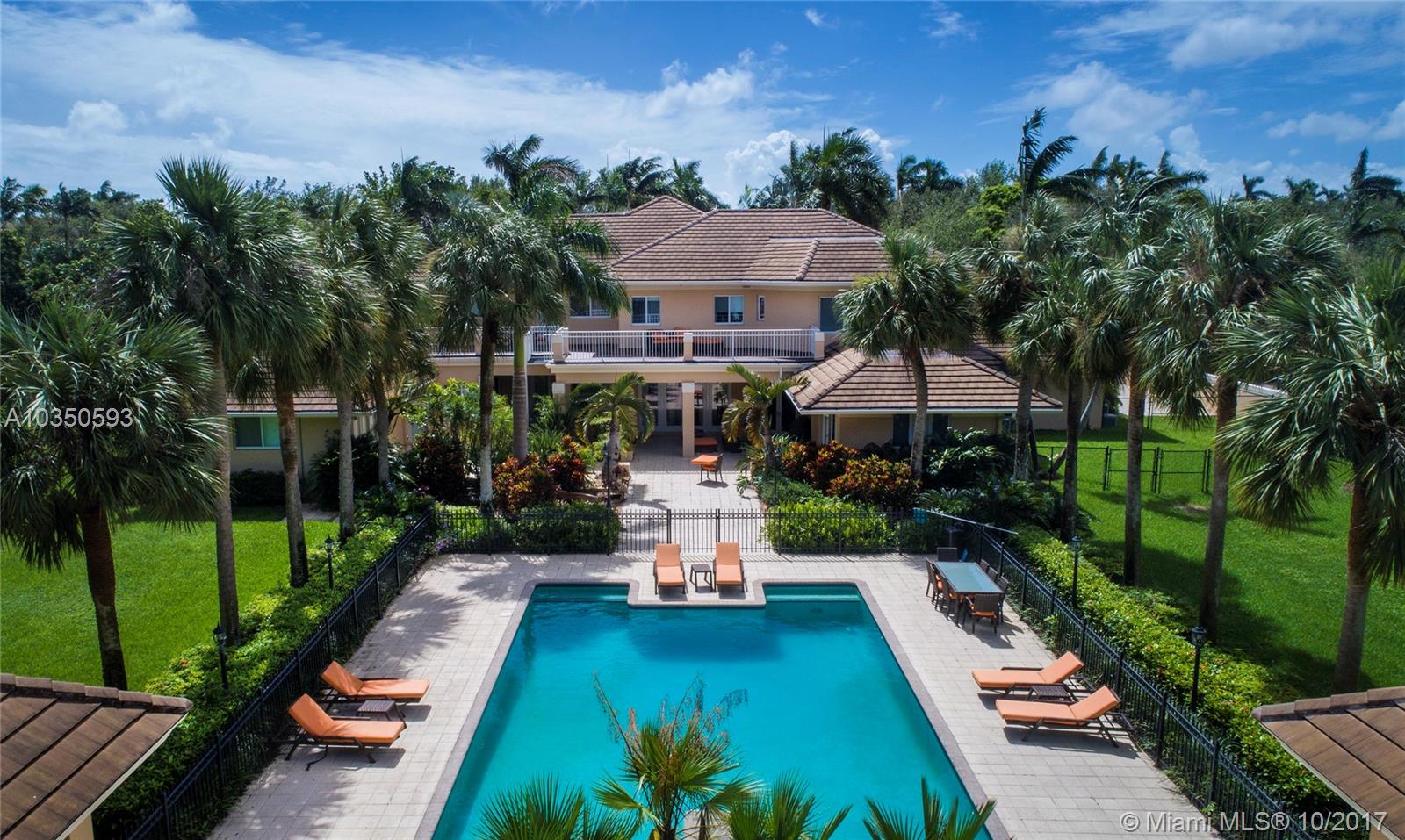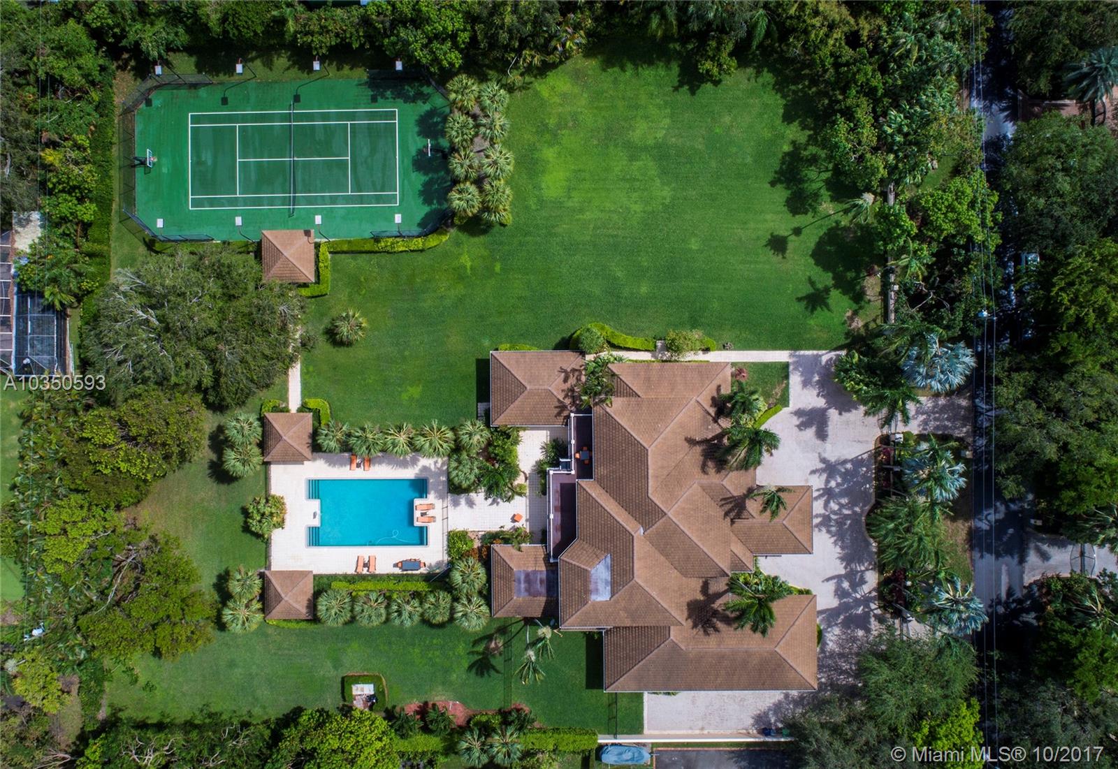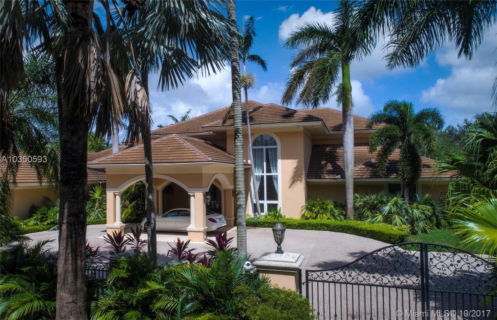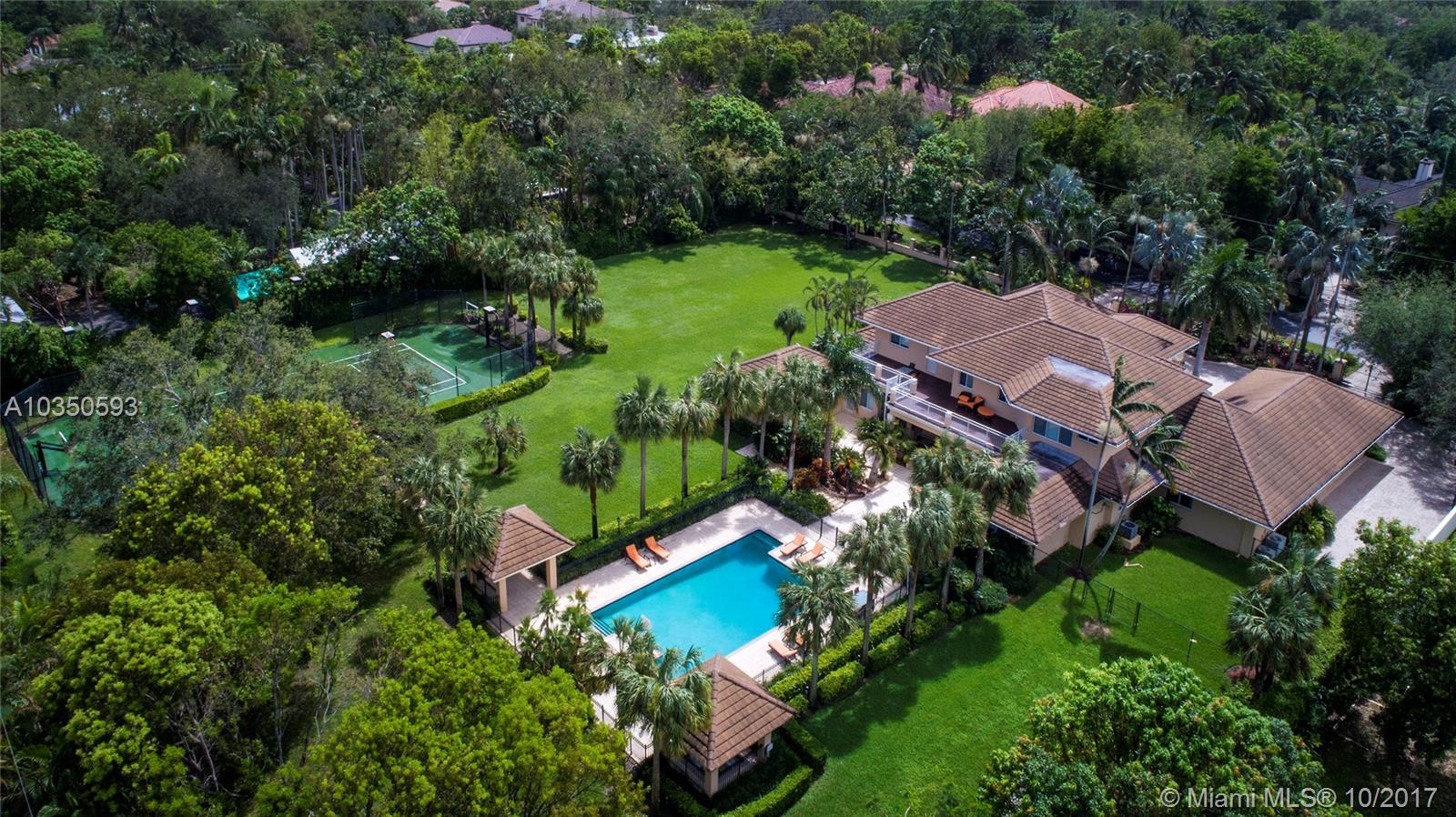 Located in the heart of Pinecrest, this showcase estate is situated on two acres of land with 7,000 sqft of luxurious appointments in an A+ rated school district. Offering 7 bedrooms, 7.5 baths, and a 4-car garage, this beauty is protected by new high impact glass windows, alarm system, gated entry, and cameras throughout. Grand entrance features impressive 30ft ceilings, staircase, and hard wood floors throughout. Dream chef’s kitchen outfitted with SubZero and gas range. Master suite boasts oversized spa-like shower complete with his and her walk-in closets. Expansive spaces perfect for entertaining including billiard room, theater/media room, resort-style pool with jacuzzi, gazebo, staff quarters/guest suite, and professional size illuminated basketball and tennis courts.