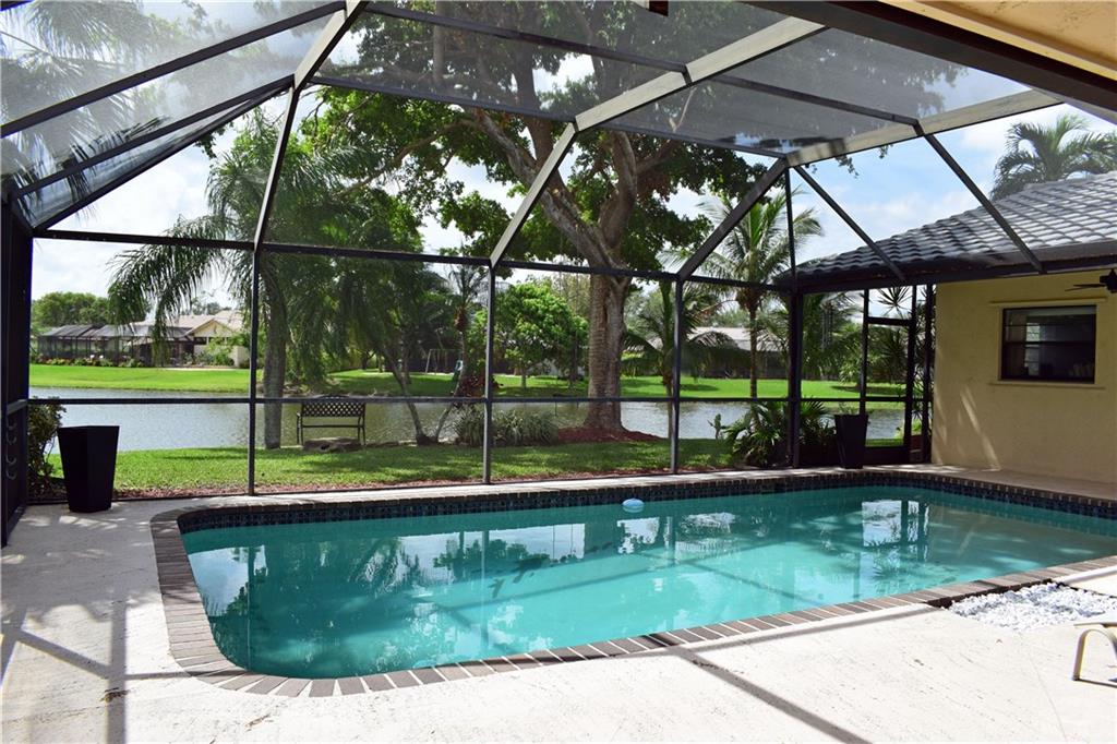 Gorgeous water views! Updated 4/2 pool home in Cypress Run. Choice, waterfront home site = tranquility & privacy. Great floor plan for entertaining. Kitchen has extensive granite countertops that carry into the patio, knockdown paint, recessed & LED lights, wood laminate flooring, crown molding in master bdrm, upgraded cabana bathrm, screen-enclosed patio with large pool, roof is 4 years old, A/C is new, double front doors with etched glass. Master bathrm renovation to be completed by 11-8. Must see!