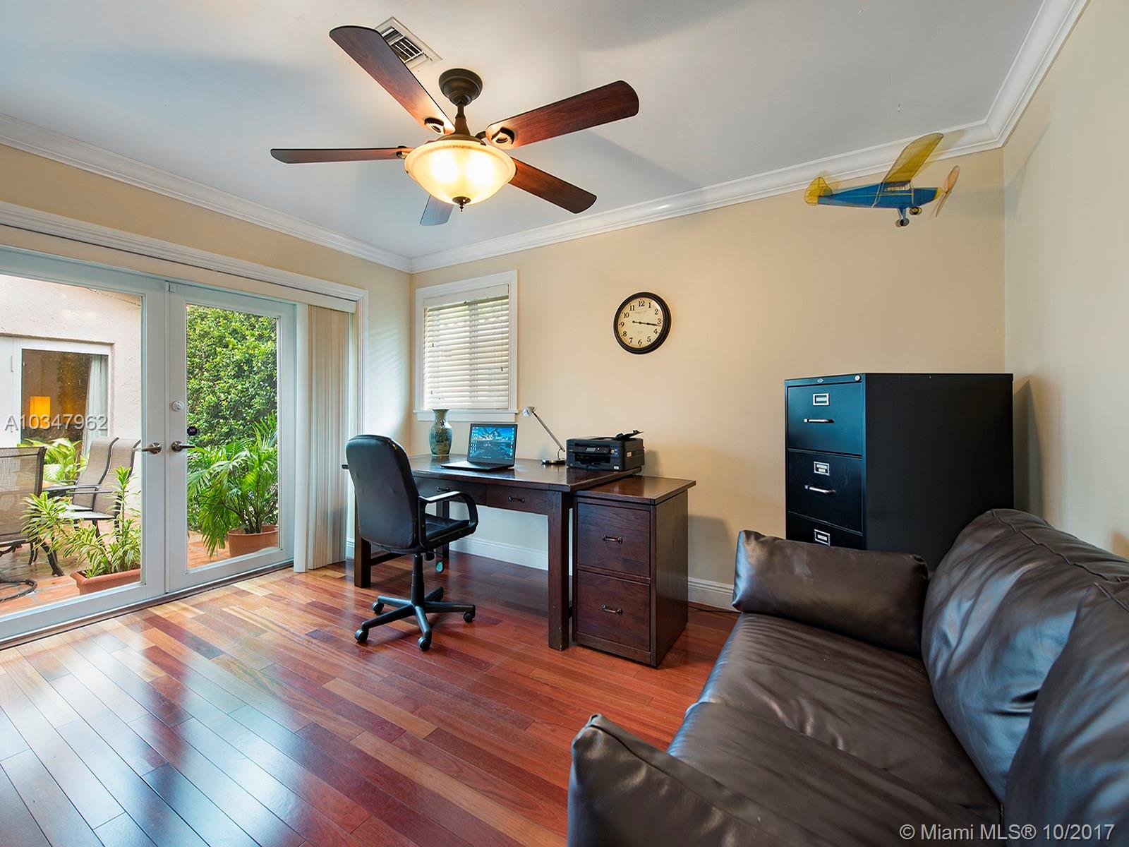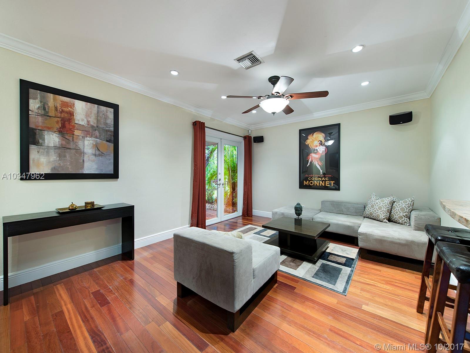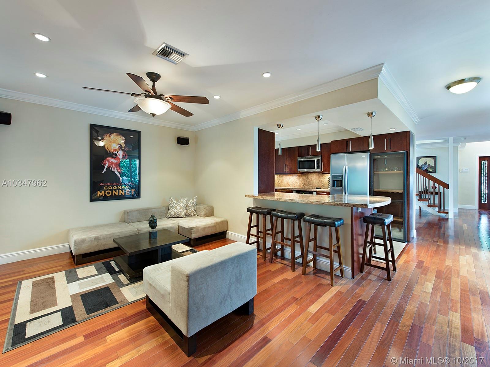 Pristine home on desirable Alhambra Cir is turn-key with an upscale Coral Gables address. Residence boasts hardwood Brazilian cherry floors, luxurious & very private master suite on second floor with wall-to-wall cedar closet & Jacuzzi tub. Remodeled kitchen features Euro wine Cave, stainless steel appliances, granite breakfast countertop with backsplash and French doors inviting you to an interior lanai for al fresco dining. Fabulous for entertaining! Convenience of two-car garage w/wall mount panels, surround sound speakers and charming back yard w/landscape lighting. Brand new AC system, impact windows & new roof in progress make this a must see. Only blocks to the Granada Golf Course, Liberty Caffe & Coral Gables Country Club gym & pool.