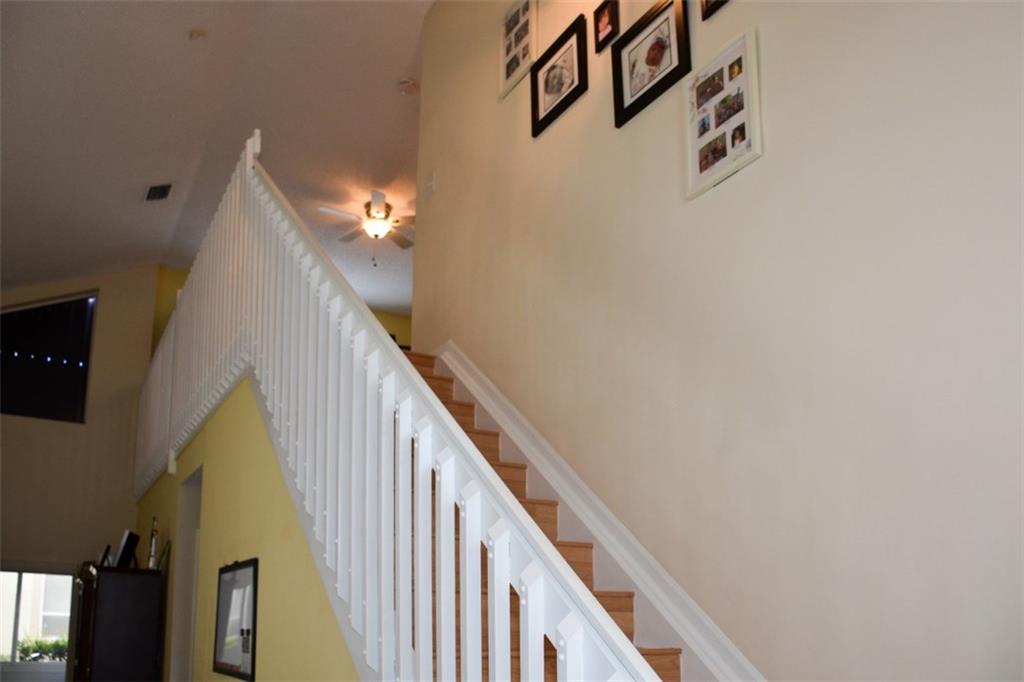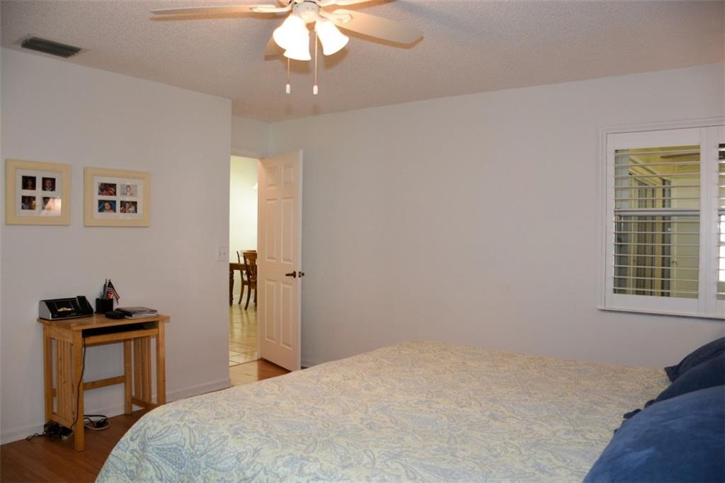 Lots of house for the money in this versatile floor plan with ground-floor master suite and beautifully renovated, eat-in kitchen. A/C is 4-years old. Plantation shutters adorn all windows and nice size screened-in patio. Laminate flooring flows from stairway to upstairs loft and into the generous size secondary bedrooms which have their own walk-in closets. Gated community has nice pool area and low monthly maintenance. Pictures taken when home was furnished. Color scheme as depicted.