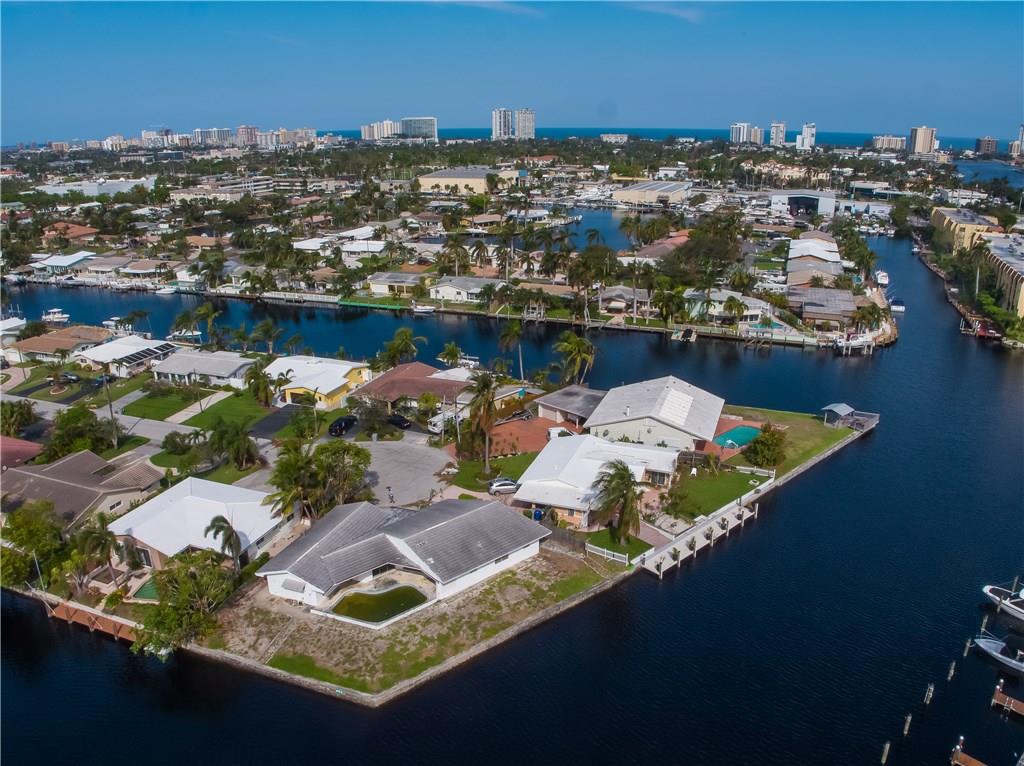 Stellar Point Lot with 161 ft of water frontage on a cul-de-sac in Snug Harbor. The views are expansive and just incredible. This is a steal! Right in the middle of the Pompano Beach CRA new development. You can purchase the lot alone OR Z Construction & Remodeling has plans for a super unique one level open floor plan capturing the infinity edge pool and the water [Lot+New Build: $1.350M].You can build to suit or remodel. Located on a beautiful street close to the beach and entertainment.