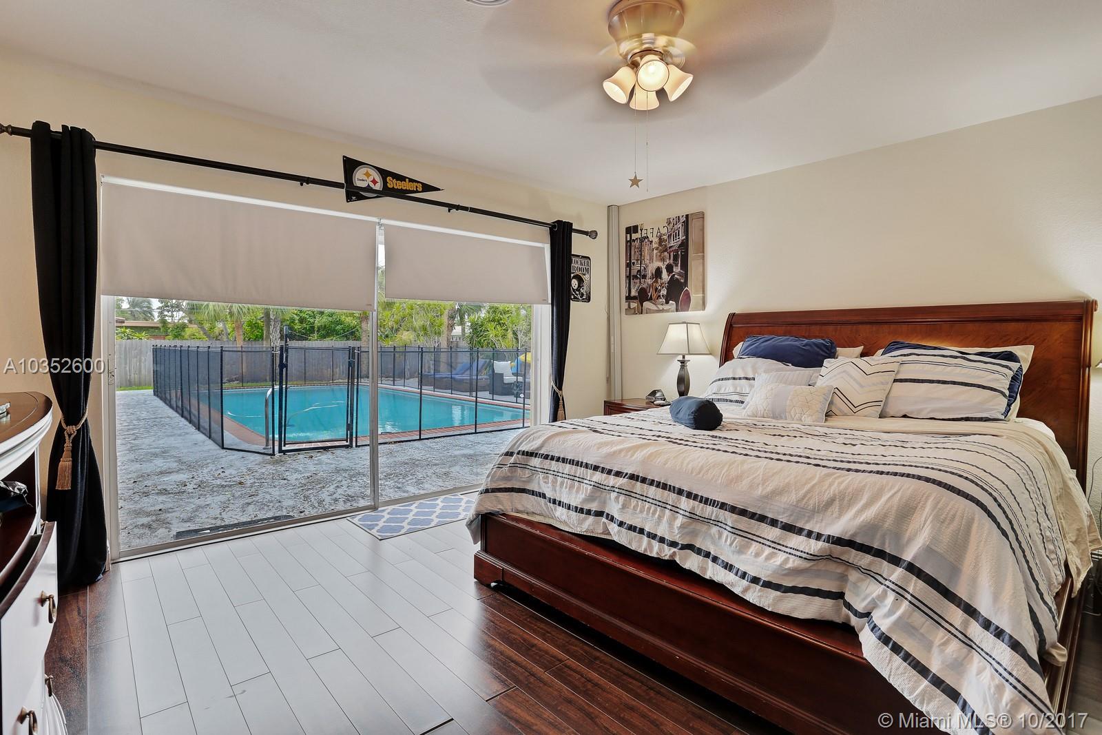 This Hollywood Hills beauty has it all! Open floor plan , lots of windows, natural light, Great size Living room and dining room area leading to a large open kitchen with Granite countertops, Stainless Steel appliances and Espresso cabinets. LED lighting throughout, Living area has Porcelain floors. Laminate floors in bedrooms. Split plan, large Master bedroom with access to the pool area, walk in closet, remodeled master bath. 4th bedroom on the other side of the home, ideal for an in-law or nanny. Bonus Florida Room with sliding doors to the pool, large laundry room and an oversized 2 car garage. This 12,780 sqft lot has plenty of room on both sides for a boat and a RV. Great Florida living!