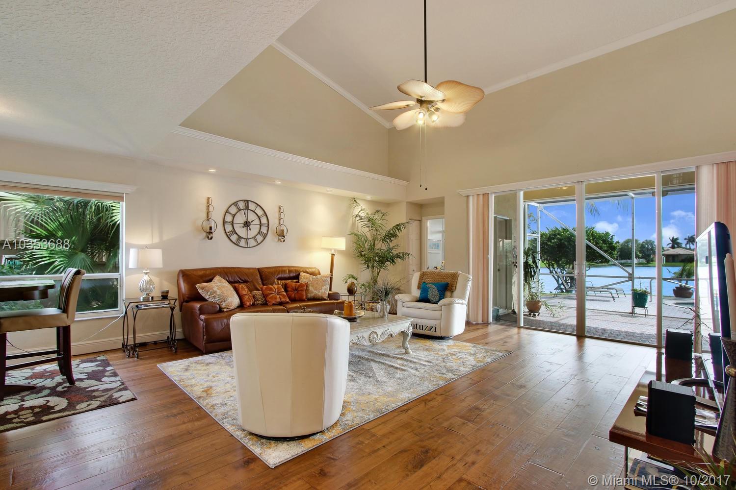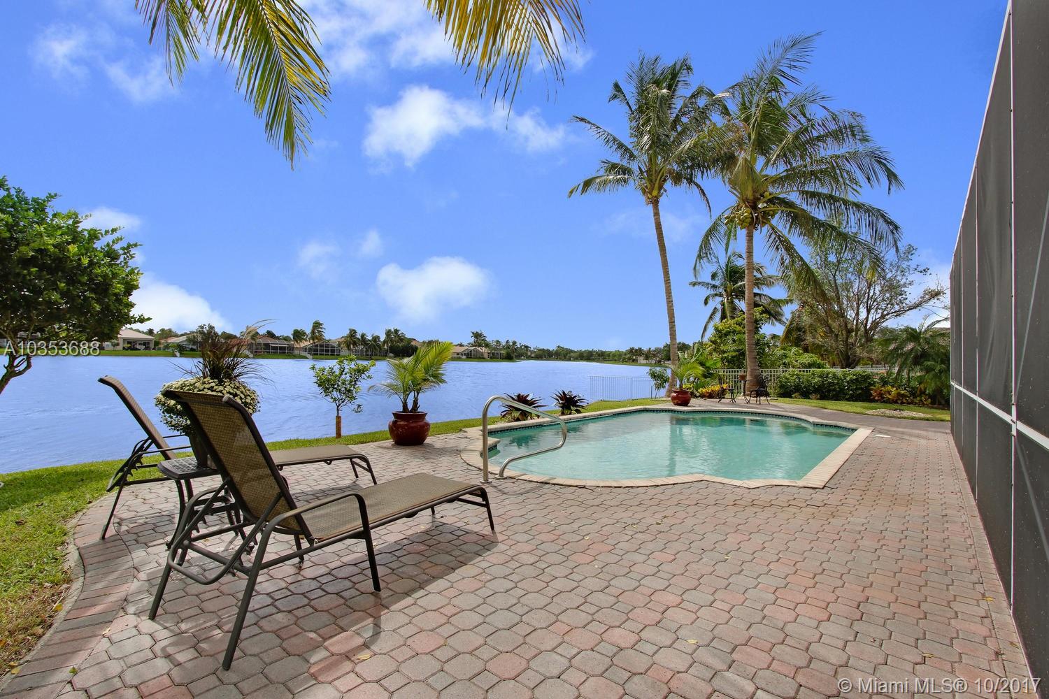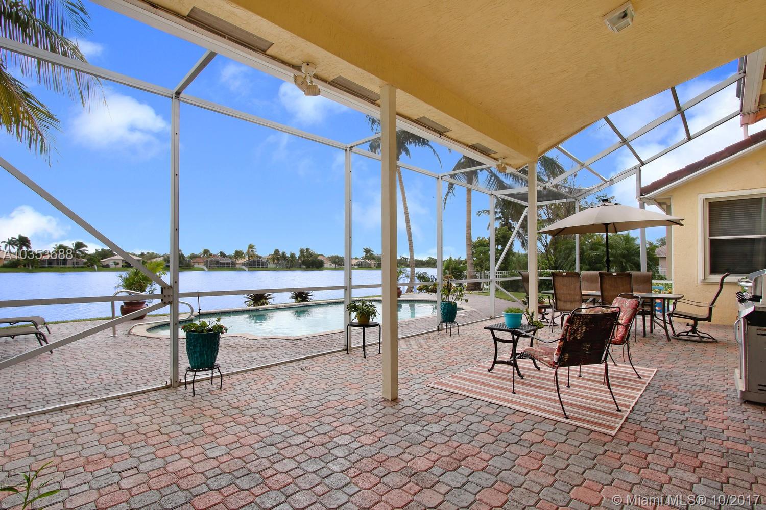 Come tour this elegantly updated 5 bedroom 3.5 bath waterfront home in Pembroke Falls! Home is fully equipped with hurricane shutters, pool, screened patio, cabana bath, downstairs master and 3 car garage. The sweeping windows provide ample light to showcase the massive formal living room and dining room, overseen by an airy loft. The kitchen is open to the family room overlooking the gorgeous water view and features wood cabinetry, granite, double oven and gas stove. Don’t miss this excellent opportunity!!