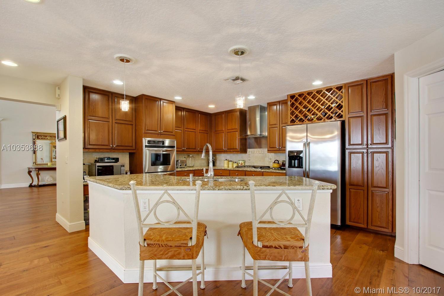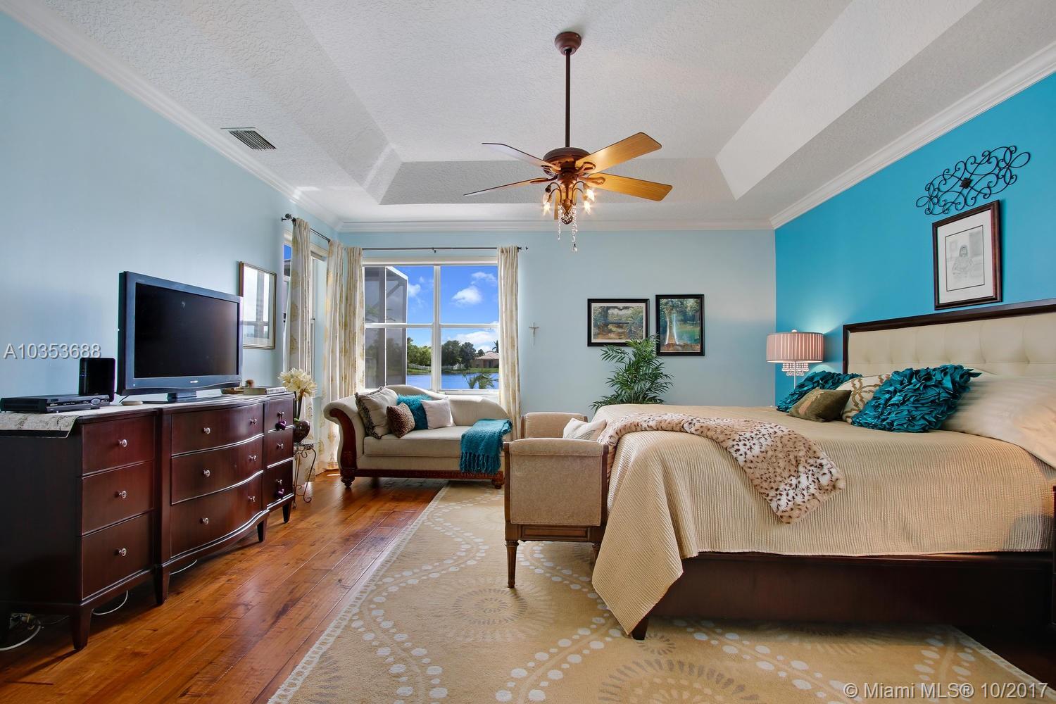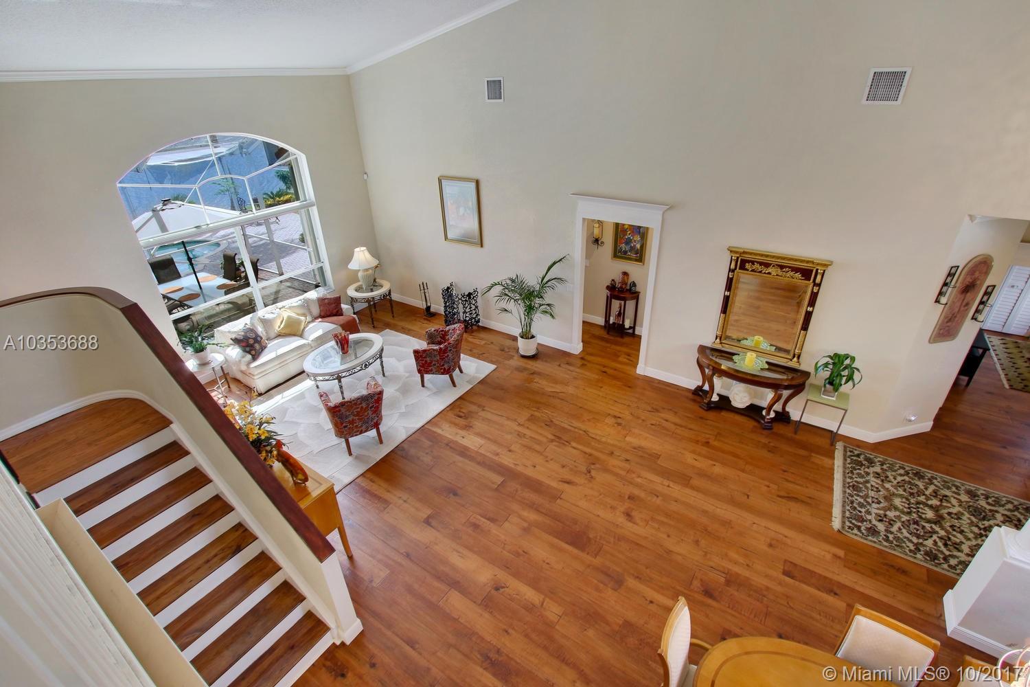 Come tour this elegantly updated 5 bedroom 3.5 bath waterfront home in Pembroke Falls! Home is fully equipped with hurricane shutters, pool, screened patio, cabana bath, downstairs master and 3 car garage. The sweeping windows provide ample light to showcase the massive formal living room and dining room, overseen by an airy loft. The kitchen is open to the family room overlooking the gorgeous water view and features wood cabinetry, granite, double oven and gas stove. Don’t miss this excellent opportunity!!