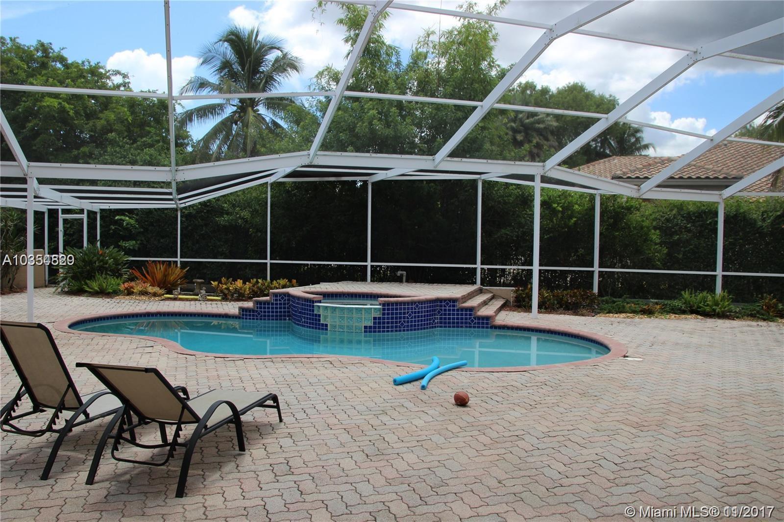 PRICE REDUCTION TO SELL! BEST PRICE PER SQUARE FT. POOL HOME ON CUL-DE-SAC W/ HUGE YARD & WATER VIEW ON ALMOST A 1/2 ACRE PIE SHAPED LOT. CIRCULAR BRICK PAVER DRIVEWAY, W/ 3 CAR GARAGE. LARGE SCREENED IN POOL, NEW OUTDOOR KITCHEN W/ ENORMOUS BRICK PAVER DECK, PERFECT FOR ENTERTAINING. UPGRADED KITCHEN, W/ CENTER ISLAND, WOOD CABINETS, GRANITE COUNTERTOPS, & WHITE/WHITE APPLIANCES. OPEN FLOOR PLAN W/ SOARING 16 FT. CEILINGS. LARGE MASTER BEDROOM W/ HIS & HERS CLOSETS. JACUZZI TUB W/ SEPARATE SHOWER & DUAL SINKS IN MASTER BATH. CABANA BATH W/ DUAL SINKS. LARGE SECONDARY BEDROOMS & DEN OFF MASTER BEDROOM. HOME IN ONE OF THE MOST DESIRED GUARD GATED COMMUNITIES IN CORAL SPRINGS. METICULOUSLY MAINTAINED. SHOWS TRUE PRIDE OF OWNERSHIP!