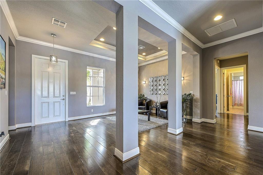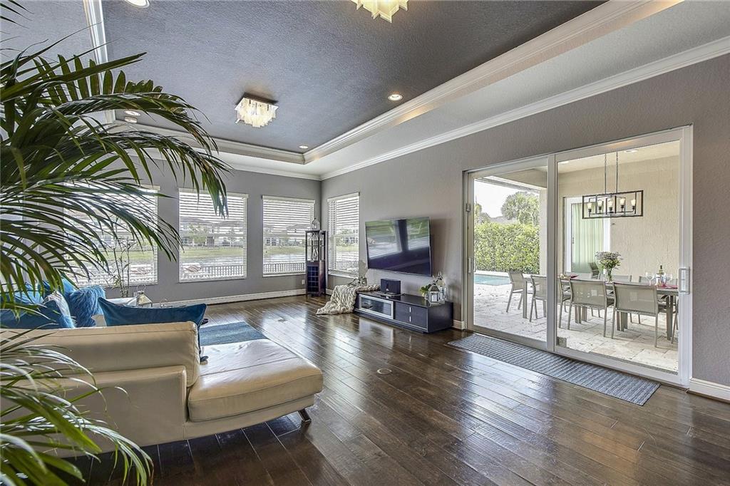 AMAZING VIEWS! Turnkey 4 Beds, 3 Baths Waterfront, Pool Home, Impact Windows & Doors, Stunning Engineered Wood Floors Throughout, Popular Cypress Model Tri-Split Floorplan, 3-Car Garage, Gorgeous Updated Patio/Pool Area With Newer Heated Pool & Spa, Breathtaking Water Views, Patio Area Perfect For Entertaining Guests, Spacious Master Bath w/Separate Tub & Shower, Dual Sinks, Custom Walk-In Closet Fit For A Queen, Crown Molding Throughout, Meticulously Maintained Home, A-Schools, & Resort-Style Amenities.