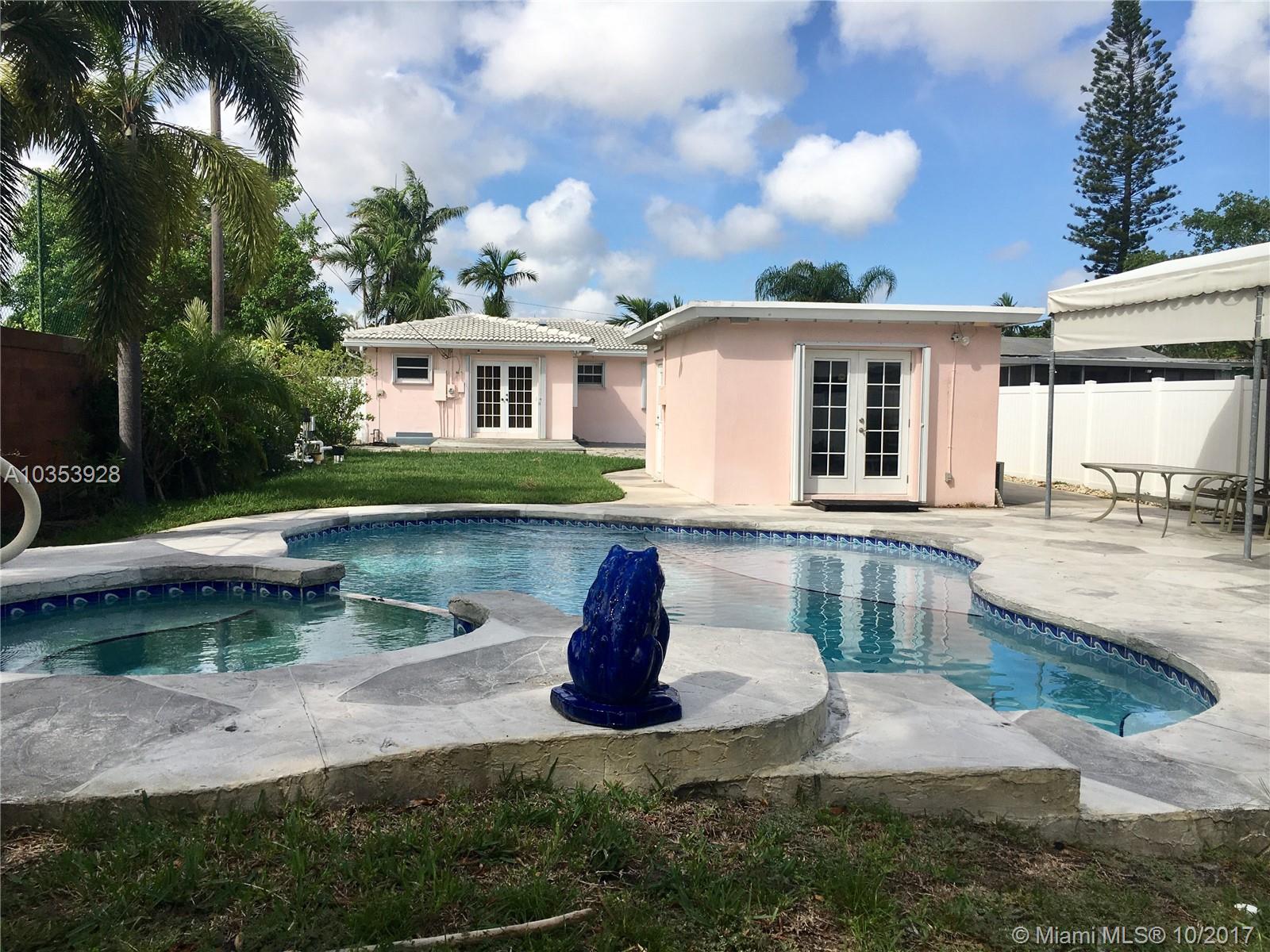 PARADISE! SIT BACK AND RELAX IN YOUR BEAUTIFULLY LANDSCAPED BACKYARD WITH A POOL THAT HAS A BEACH AREA AND SPA! THIS IS A GREAT HOME FOR ENTERTAINING YOUR GUESTS! THIS HOME HAS A DETACHED GARAGE THAT CAN BE USED AS A HANG OUT SPOT OR A PLAY AREA FOR CHILDREN AS IT INCLUDES AC AND 2 SEPARATE AREAS TO COOL DOWN. AT NIGHT, YOU CAN WATCH THE STARS WHILE YOU SIT AROUND THE FIRE PIT AREA. SPACIOUS DRIVEWAY THAT LEADS ALL THE WAY TO THE BACKYARD (EVEN SPACE TO STORE A BOAT)! THERE IS A WOODEN DECK FOR YOUR PATIO FURNITURE AND IT LEADS INTO YOUR 2 BEDROOM 2 BATHROOM HOME WITH A KITCHEN, LIVING ROOM, DINING AREA, AND FLORIDA ROOM. YOUR HOME HAS ACCORDION SHUTTERS FOR ALL YOUR WINDOWS. THIS HOME IS CONVENIENTLY LOCATED CLOSE TO DOWNTOWN HOLLYWOOD AND HOLLYWOOD BEACH!
