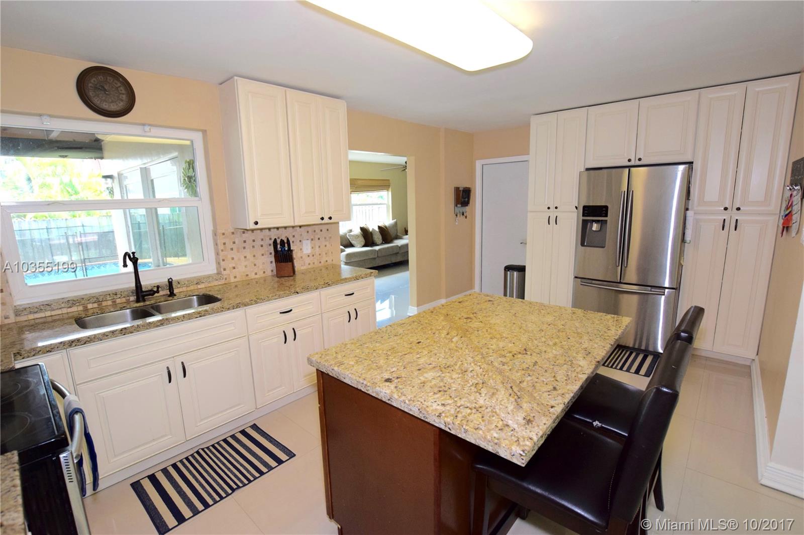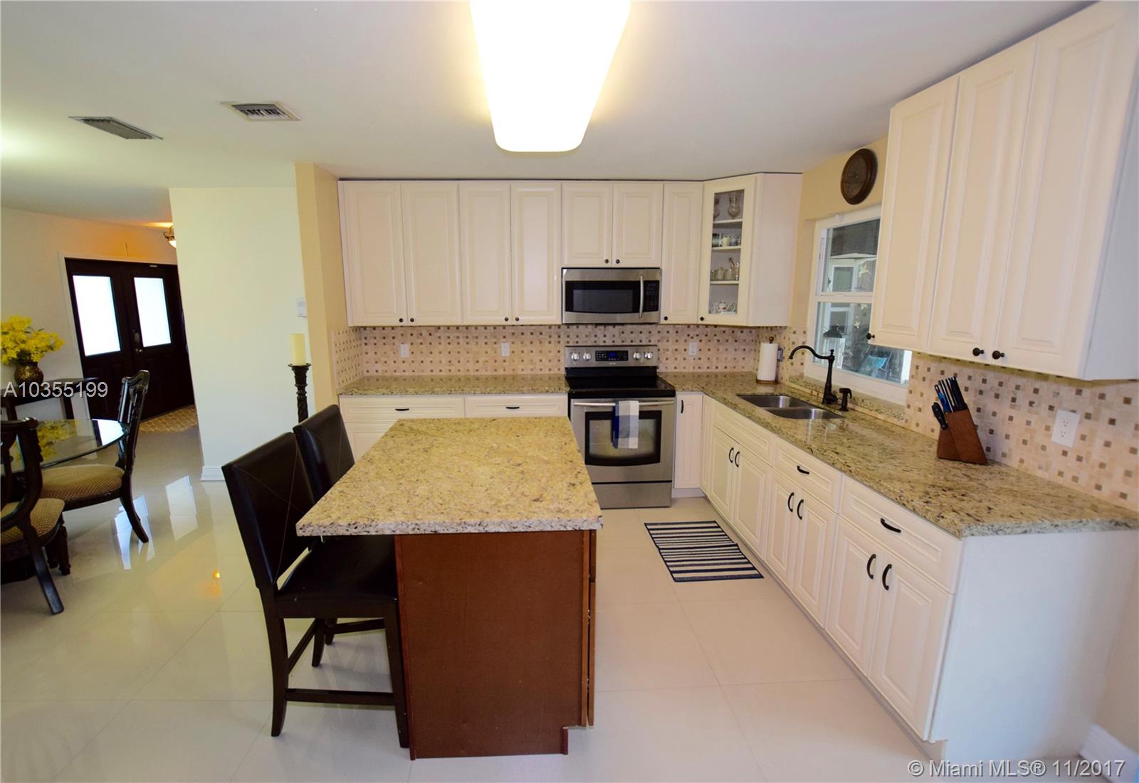 This is it! The one your buyer is looking for and has everything they need! The seller has done a fantastic job remodeling this home. Porcelain tile and wood floors. Outstanding kitchen that has been extended with light granite,wood cabinets and cooking island. Bathroom was just remodeled last year with all new plumbing. Impact resistant windows throughout the house including the front and garage door. Once you step out the french doors you will feel a sense of relaxation in the covered patio that looks onto the pool complete with child fence and large grassy backyard.