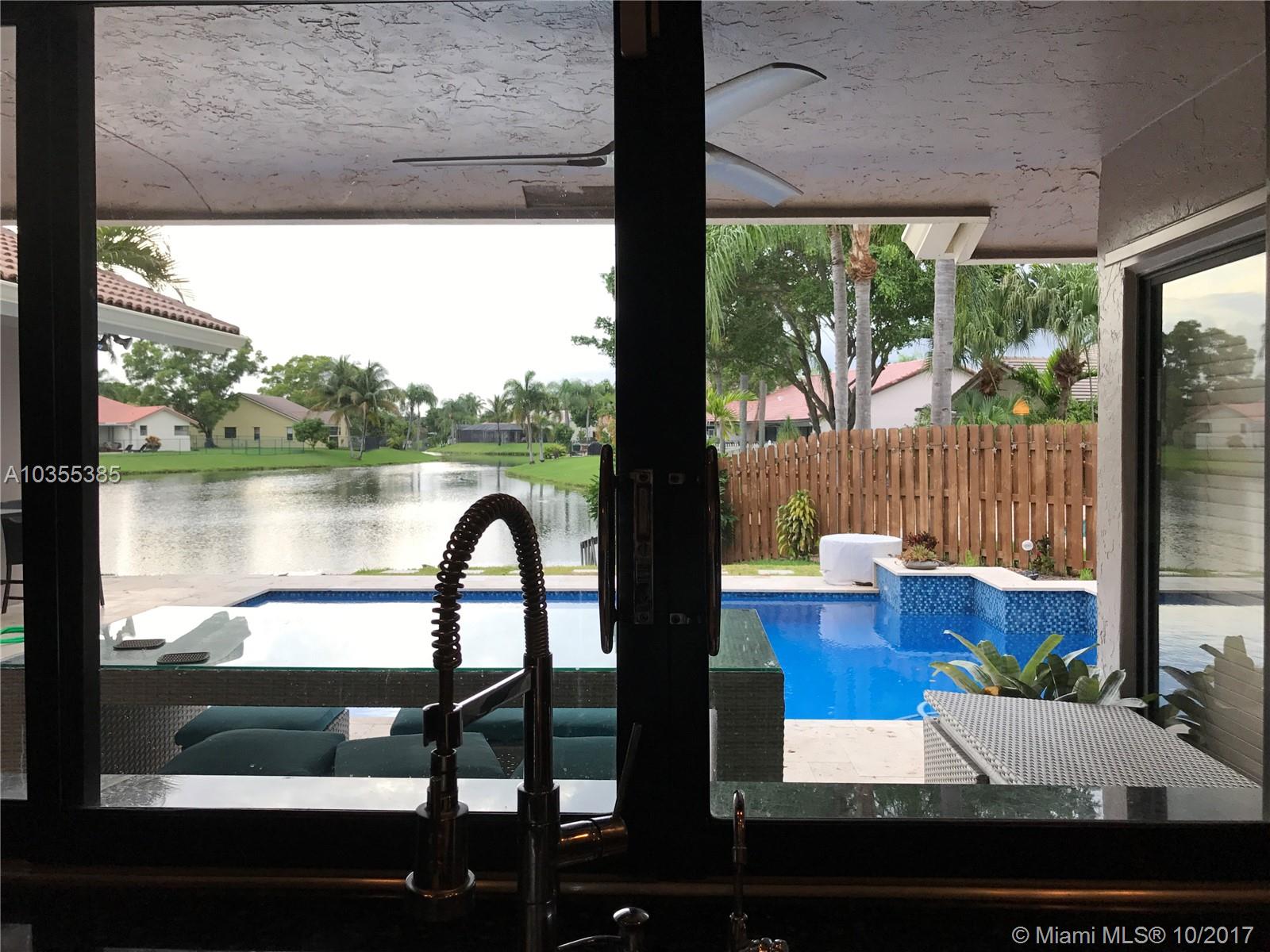 Lakefront 4 bedrooms, 2/1 Bathroom home in Jacaranda Lakes. Remodeled one story home with volume ceilings and crown molding. Large, open kitchen with granite countertops and upgraded bathrooms. Walk in closets. New salt water pool with LED lights and waterfalls; new travertine decking. Fresh exterior/ interior paint. Newer wood/laminate/tile floors. Roof replaced in 2006, newer AC unit. Spacious living and family room overlooking lake makes this home perfect for entertaining! Dining room chandelier is excluded from the sale.