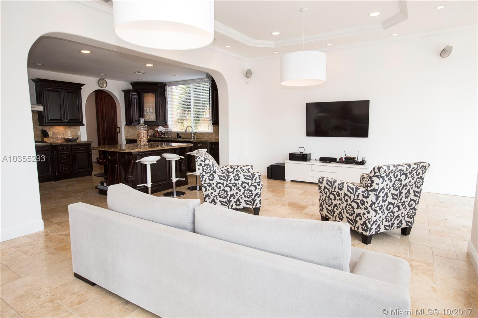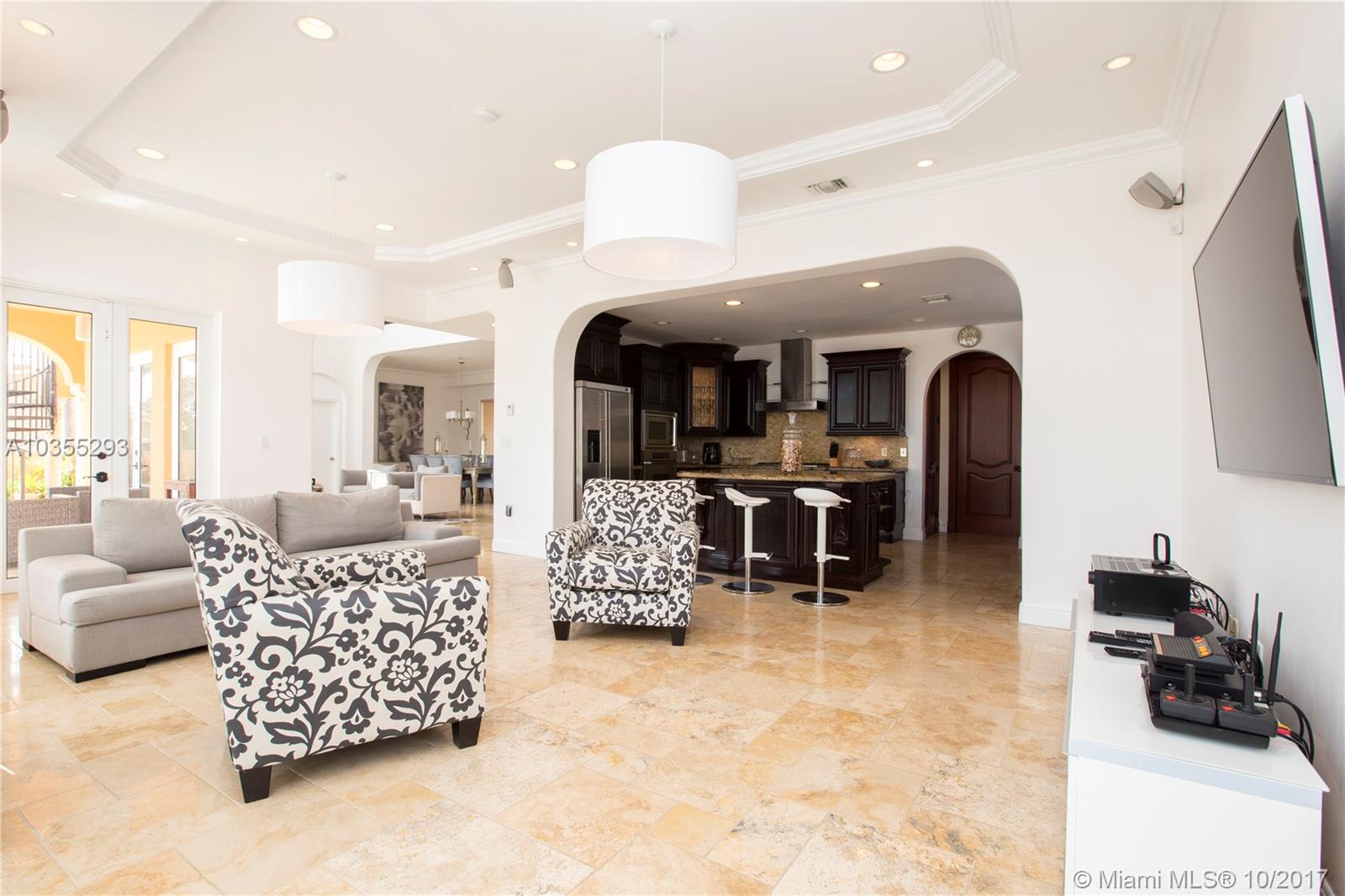 Beautiful waterfront Home located in Keystone Point, direct ocean access, 60'x 6’ dock park up to 70 FT Boat.Travertine marble from the driveway through the private courtyard , 30-foot ceilings, Built in 2005 with great taste, marble floors, ample water views from almost every room, great layout second floor balcony overlooking the pool & canal.