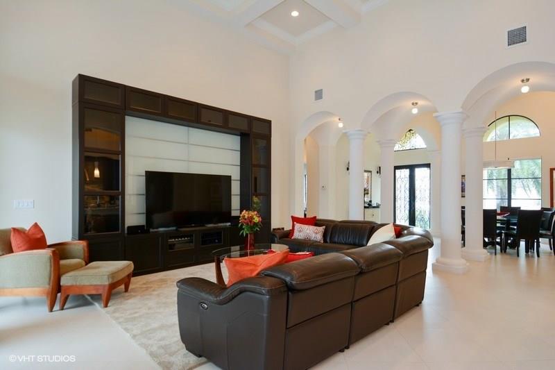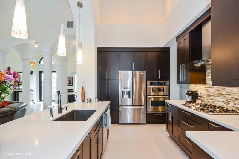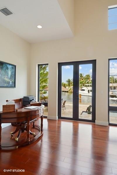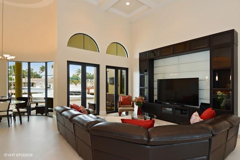 This spectacular ocean access home is a perfect 10 w/ custom designer finishes at every turn. This beautiful new construction (2011) home w/ soaring 17ft ceilings in living areas & amazing waterfront views from almost all rooms, gorgeous gourmet kitchen w/ high-end appliances, custom wood cabinets & quartz counters. Cool Porcelain tile and "Santos" mahogany wood flooring throughout, huge water-side master suite with French doors leading to a resort style salt water pool w/ swim out & serene water views.