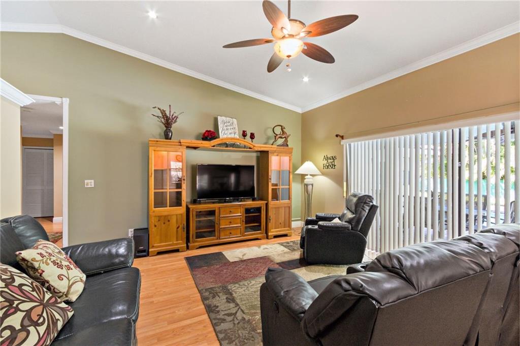 SHORT SALE 1 story home ready for you, New roof in 2006, Newer AC & Water heater, Wood flooring & huge bedrooms, Upgraded bathrooms & lots of room, Eat in kitchen,Stainless appliances, Crown Moldings, Formal dining, Huge living & family rooms, Knockdown design & high-hat lighting,Surround sound stereo speakers installed inside & out, Huge fully fenced patio with overhang & heated pool, Stainless fridge in pics to be replaced by regular stainless fridge, Great parks, shopping, A+ schools.