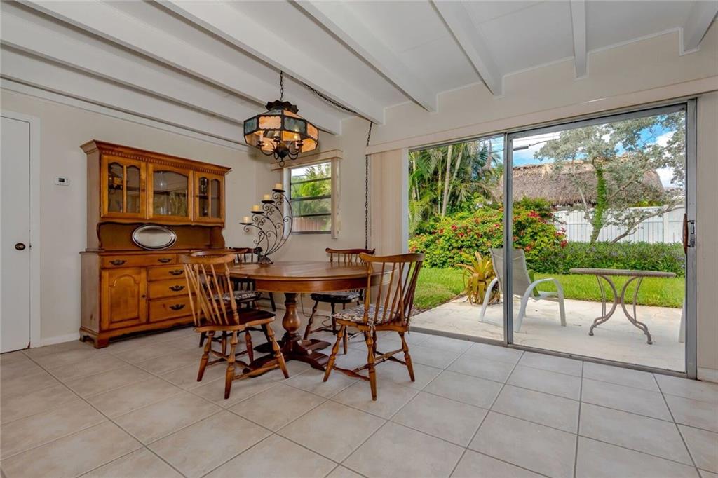 Tons of charm in this 3 bed, 3 bath home. Beamed ceilings. Beautiful white kitchen cabinets. East of Federal Hwy, close to beach, shops, 21 restaurants, 2 parks and more! Circular drive, nice large yard. Newer tile. Room for pool in beautifully landscaped back yard. Newer roof. Newer electric panel. Current lowest home in area. Once in a while a 3 bed, 3 bath home comes along, don't miss this one!