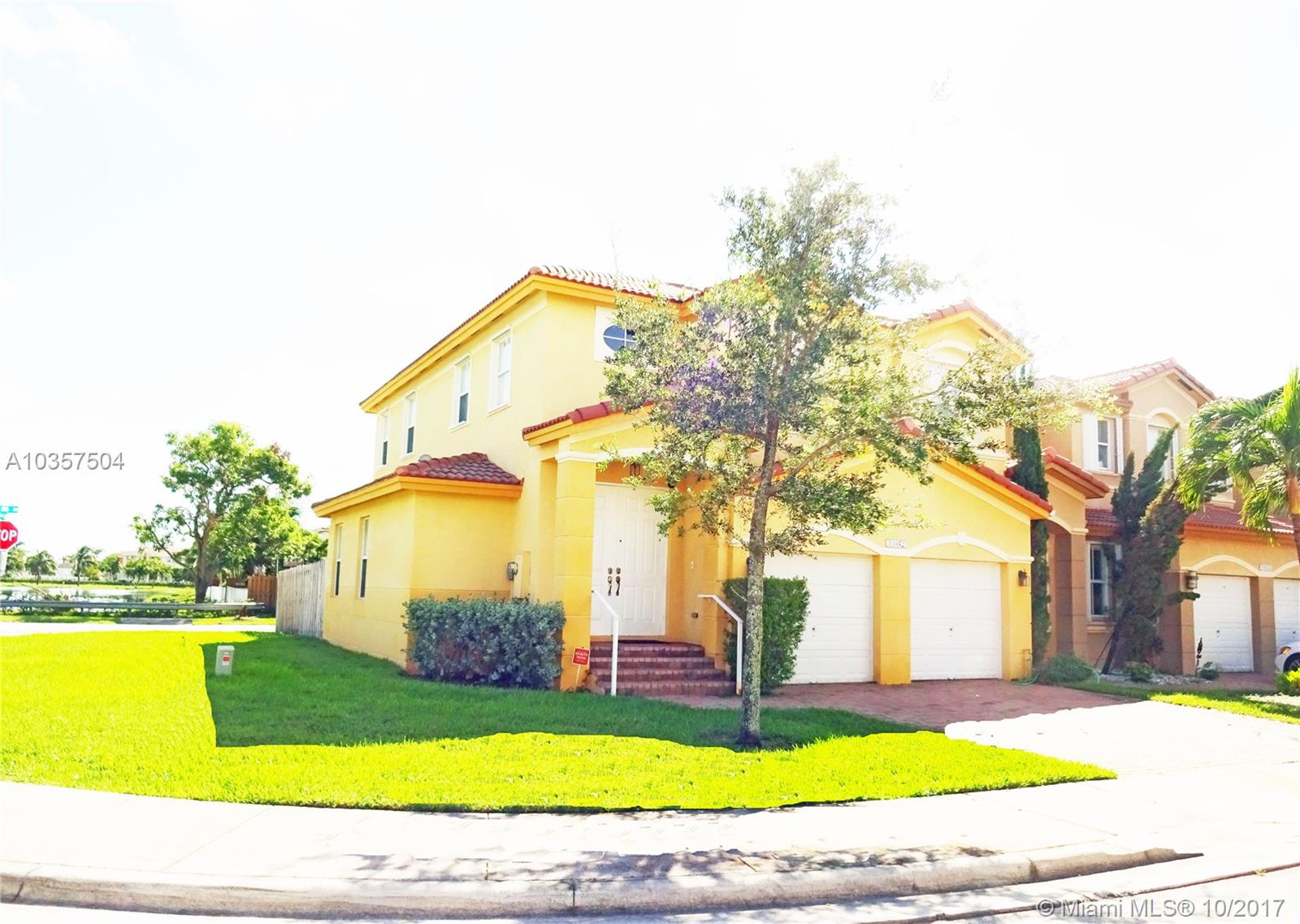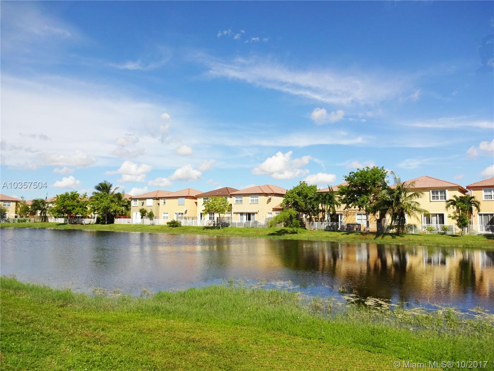 PRISTINE ISLANDS AT DORAL CONTEMPORARY CORNER TWO STORY CORNER 4 BEDROOM 2.5 BATH TOWNHOUSE WITH LAKE VIEWS ON THE EAST AND SOUTH SIDE OF THE HOME, A BRIGHT OPEN FLOOR PLAN, FORMAL LIVING AND DINING AREAS, VOLUME CEILINGS AND GOURMET KITCHEN WITH STAINLESS APPLIANCES, SNACK COUNTER & GLEAMING GRANITE COUNTERTOPS. UPSTAIRS ARE THREE NICE SIZED BEDROOMS, A LUXURIOUS MASTER BEDROOM & BATHROOM SUITE WITH ROMAN TUB & SEPARATE DUAL VANITIES. THERE IS TILE ON THE FIRST FLOOR,LAMINATE WOOD ON THE STAIRS AND SECOND FLOOR. OUTSIDE IS A PRIVATE YARD WITH STONE PAVER PATIO. EXTRAS INCLUDE HURRICANE SHUTTERS, SECURITY SYSTEM, PADDLE FANS AND MORE. AMENITIES INCLUDE COMMUNITY CLUBHOUSE AND POOL, THE DORAL MASTER COMMUNITY CENTER WITH TENNIS, GYM, SOCIAL ROOM AND WALKING DISTANCE TO SCHOOLS. HURRY!